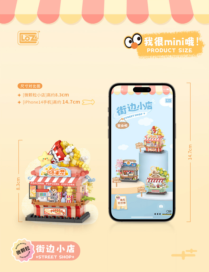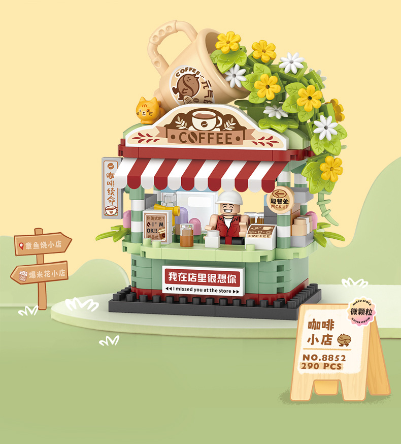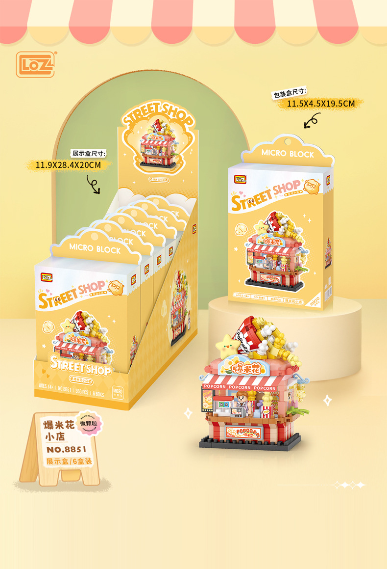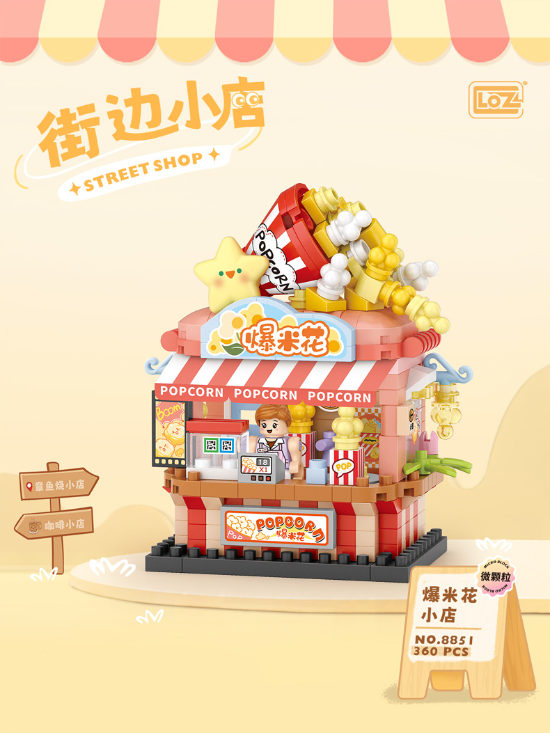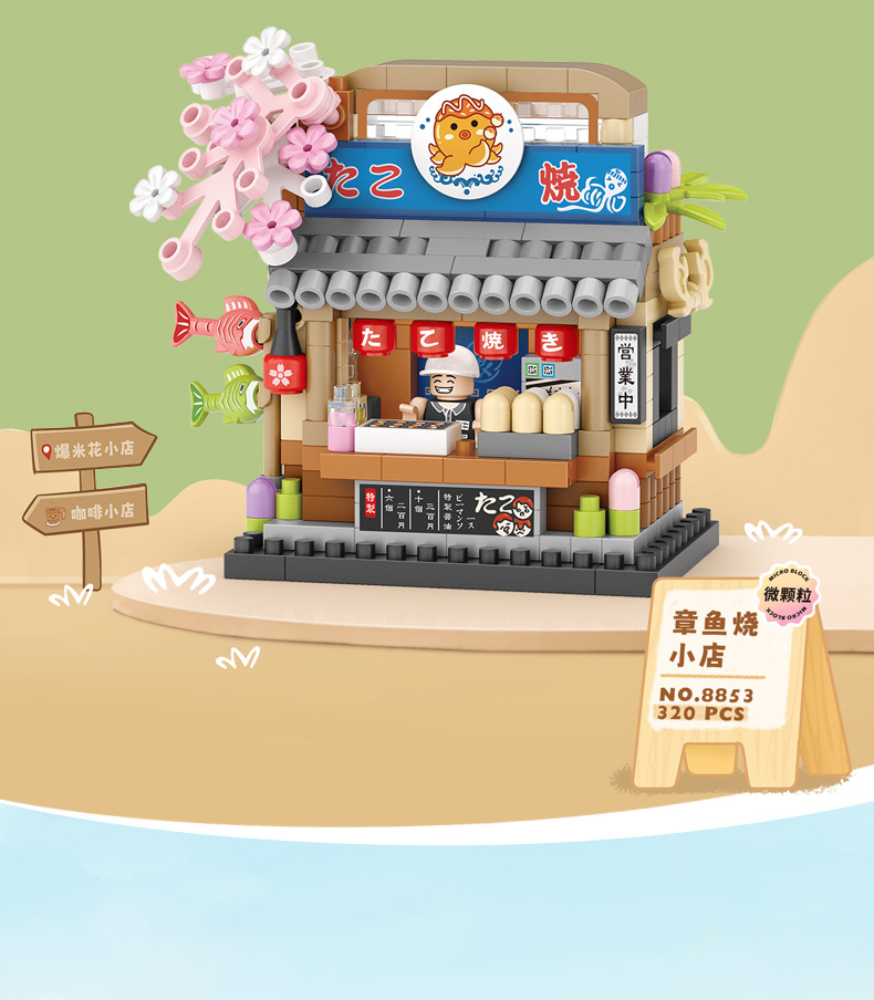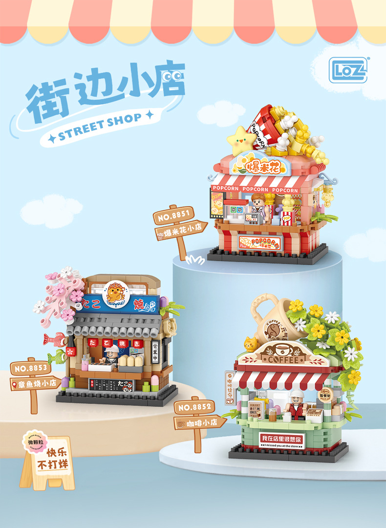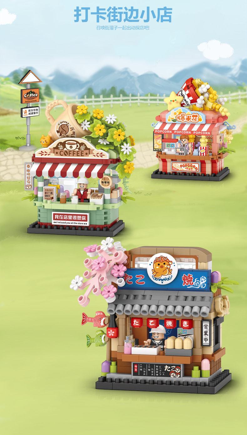 LOZ 마이크로 다이아몬드 빌딩 블록 미식가 스트리트 뷰 조립 장난감 8851-8853 팝콘 문어 가게 학교 선물스토어 가기