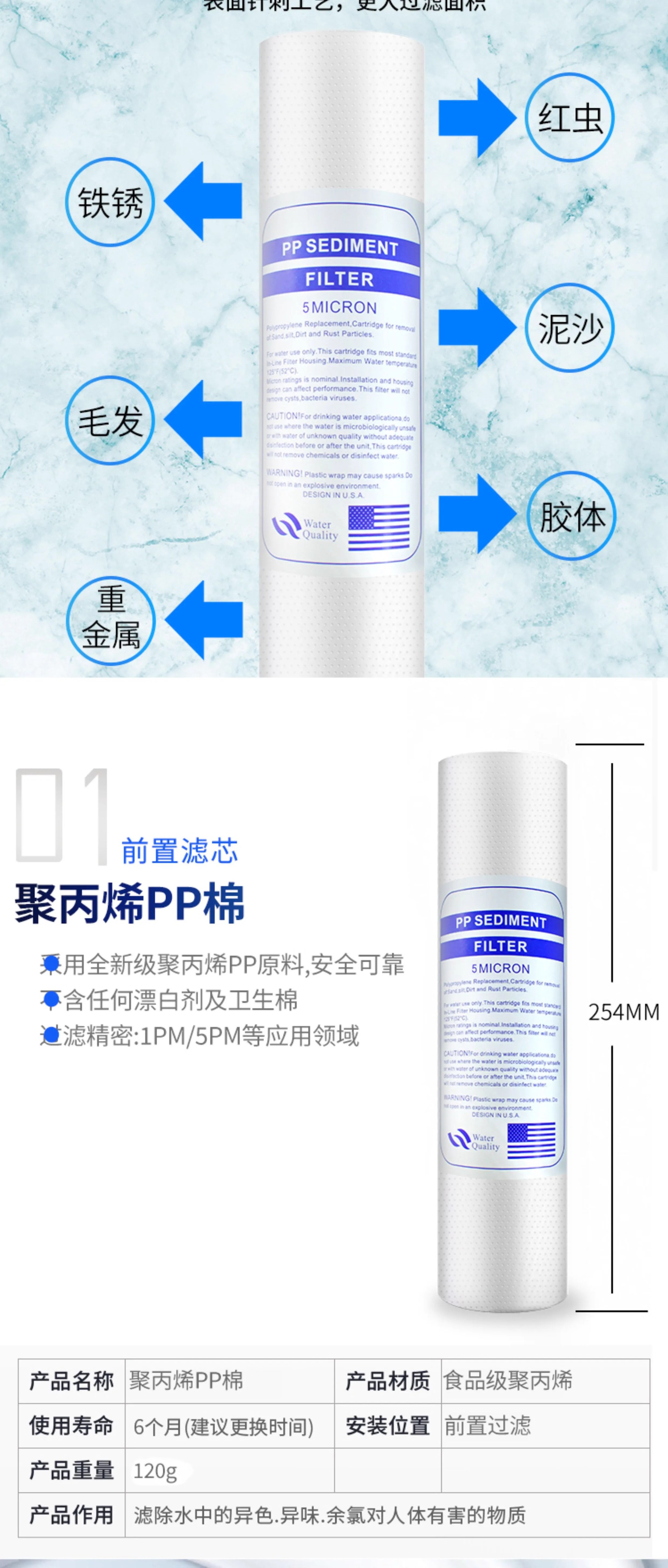 정수기 필터 요소 10 인치 보편적 인 물 디스펜서 3 단계 5 단계 필터 요소 PP 면 RO 막 활성탄 UDF 가구스토어 가기
