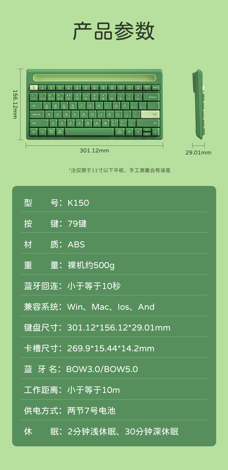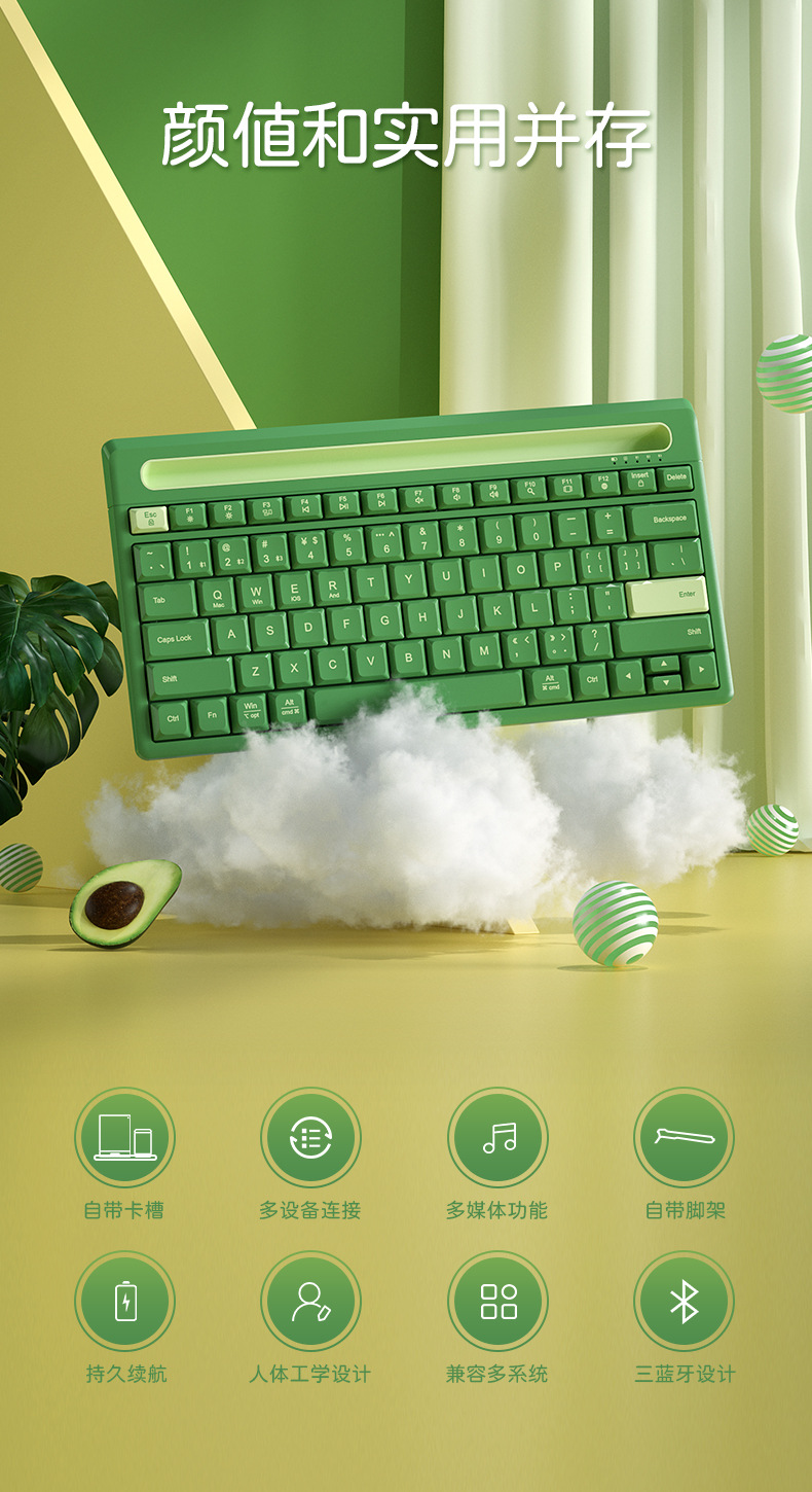 카드 슬롯이 있는 B.O.W 무선 블루투스 키보드 K150B, 고급스럽고 얇고 휴대성이 뛰어난 소녀용 사무실 소스 공장