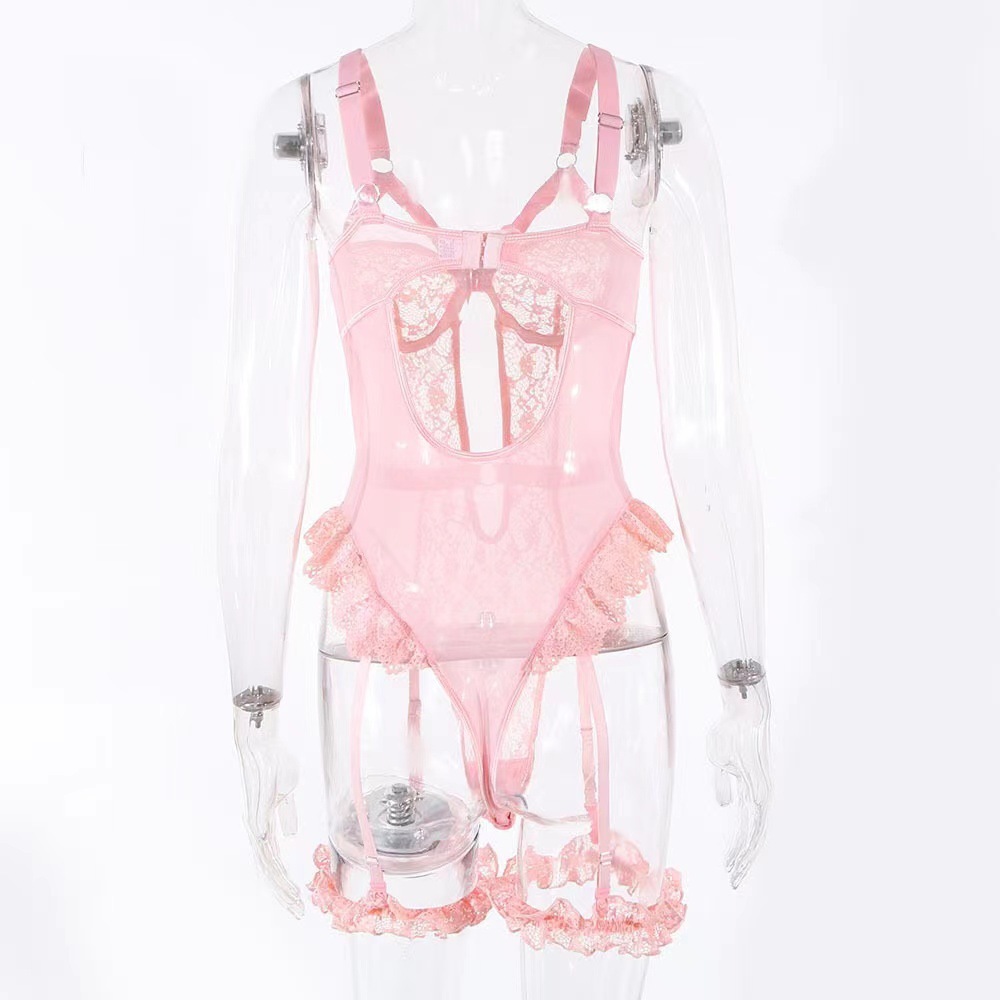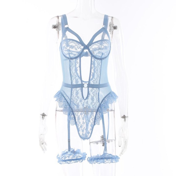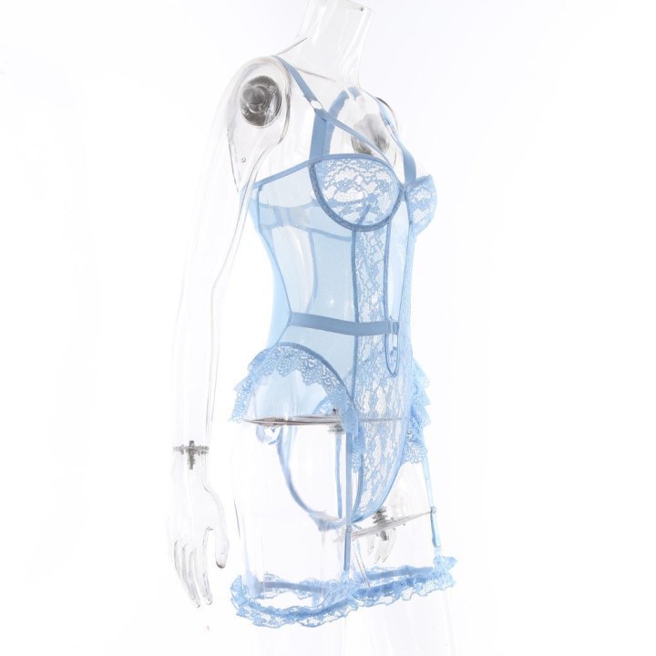 유럽과 미국의 해외 무역 섹시 속옷, 여성용 레이스 메쉬 섹시 슬립 원피스, 다리끈이 있는 섹시한 속이 비치는 디자인