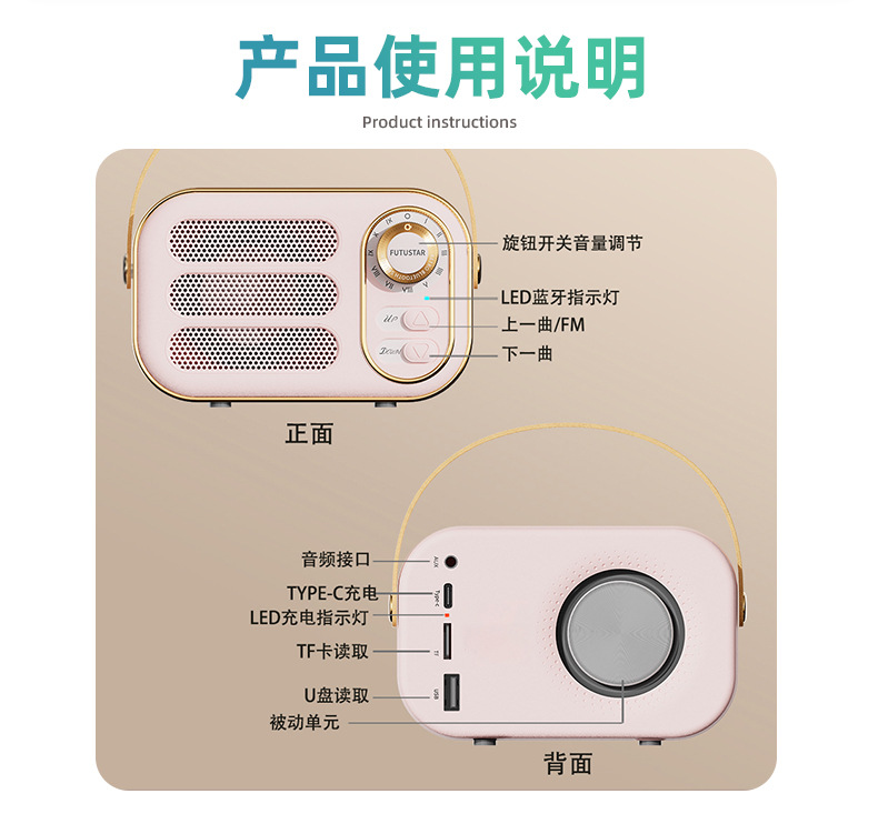 功能:蓝牙连接播放,免提通话,TF卡播放 U盘播放