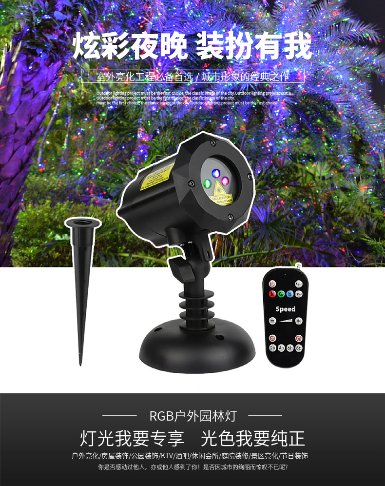 아마존 베스트셀러 잔디 램프 RGB 반딧불 정원 레이저 램프 크리스마스 정원 무대 조명 빨간색, 녹색 및 파란색