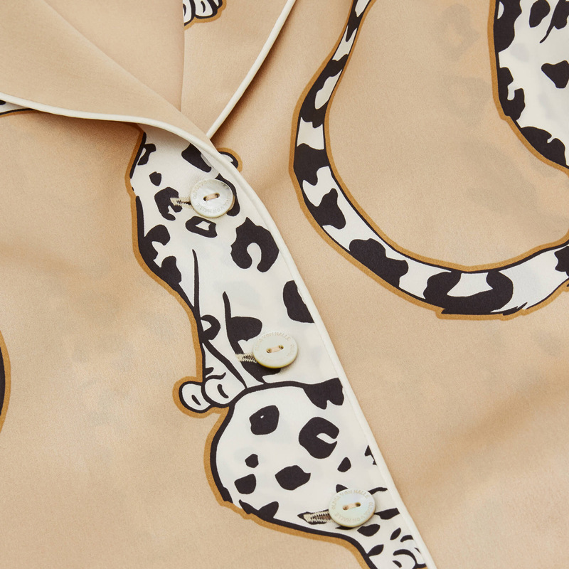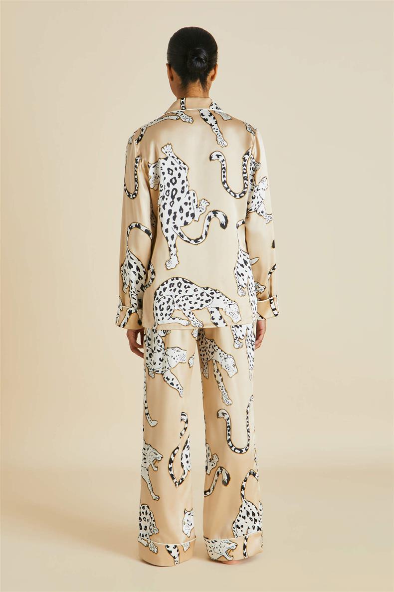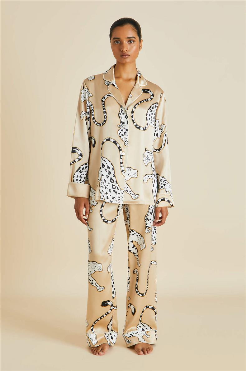 유럽 역 엔트리 럭셔리 2023 새로운 봄과 가을 잠옷 여성 틈새 고급 실크 새틴 홈 옷 투피스 세트스토어 가기