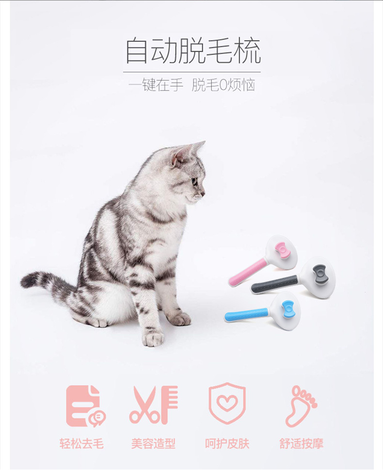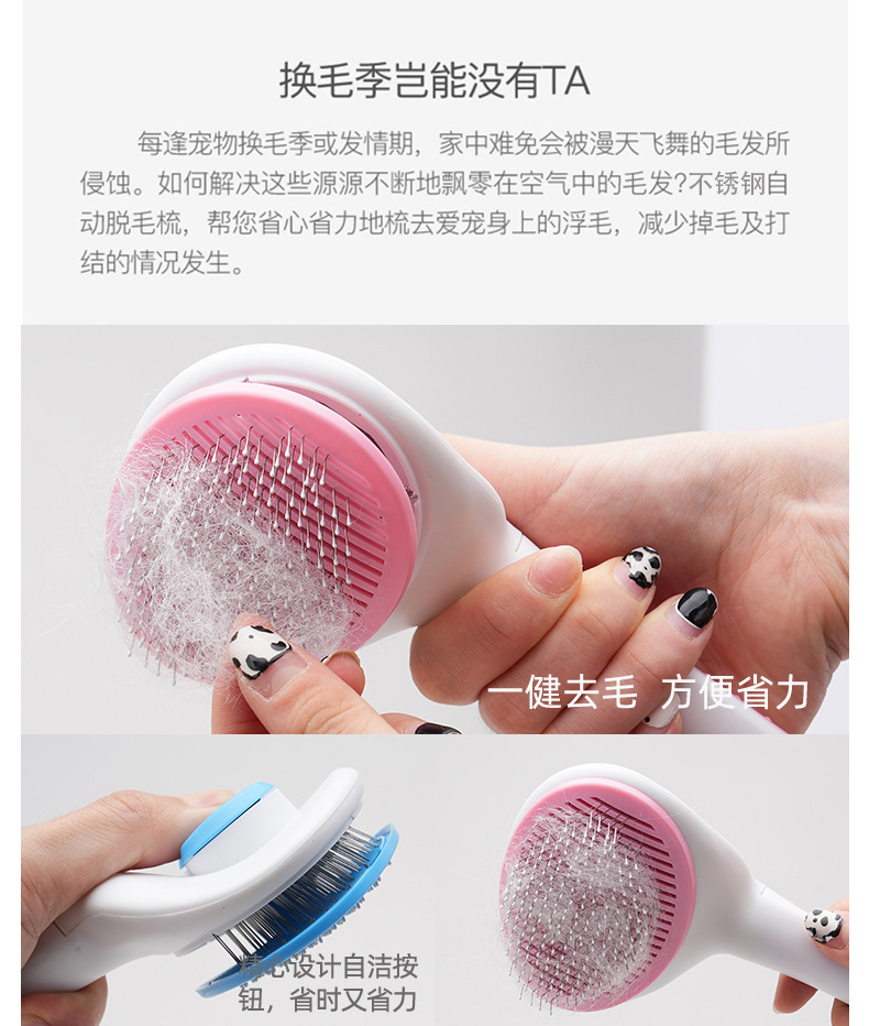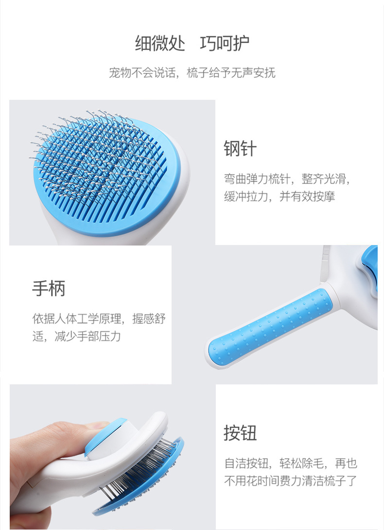 새로운 바늘 빗 원 키 머리 제거 애완 동물 빗 스타일링 머리 제거 고양이 빗 자동 머리 제거 아름다움 개 빗 머리스토어 가기