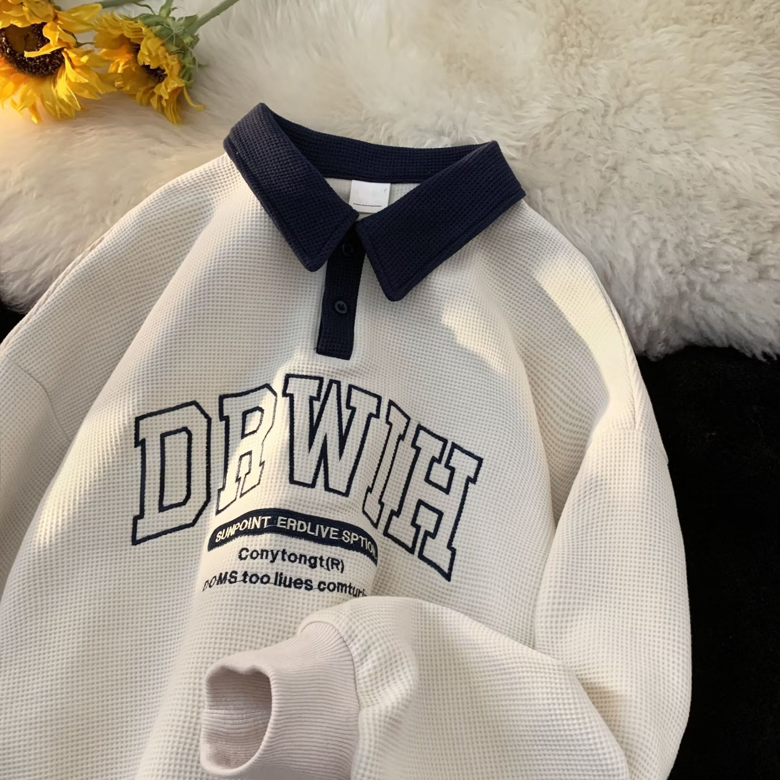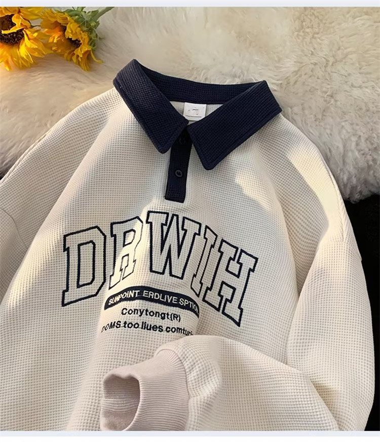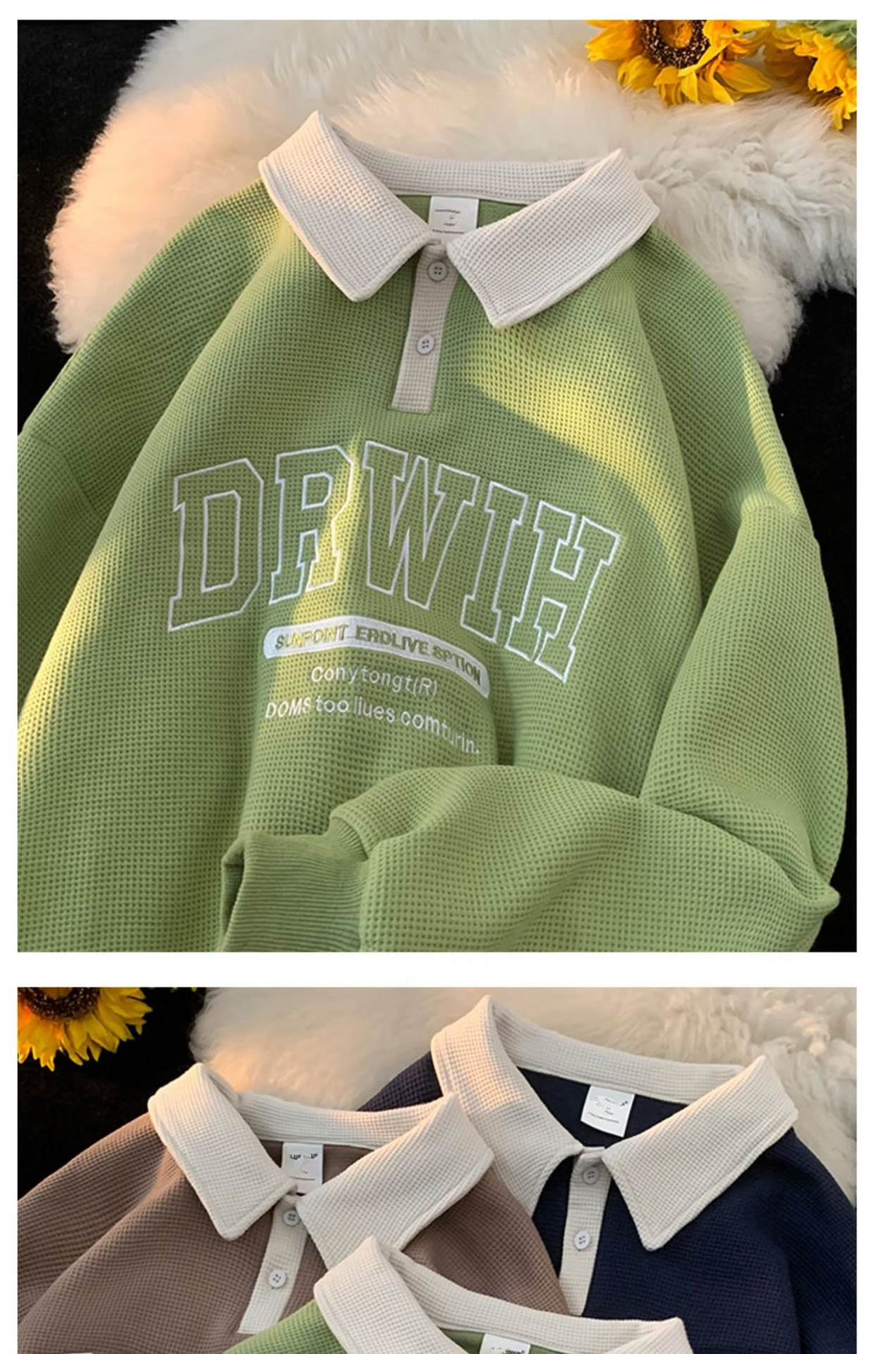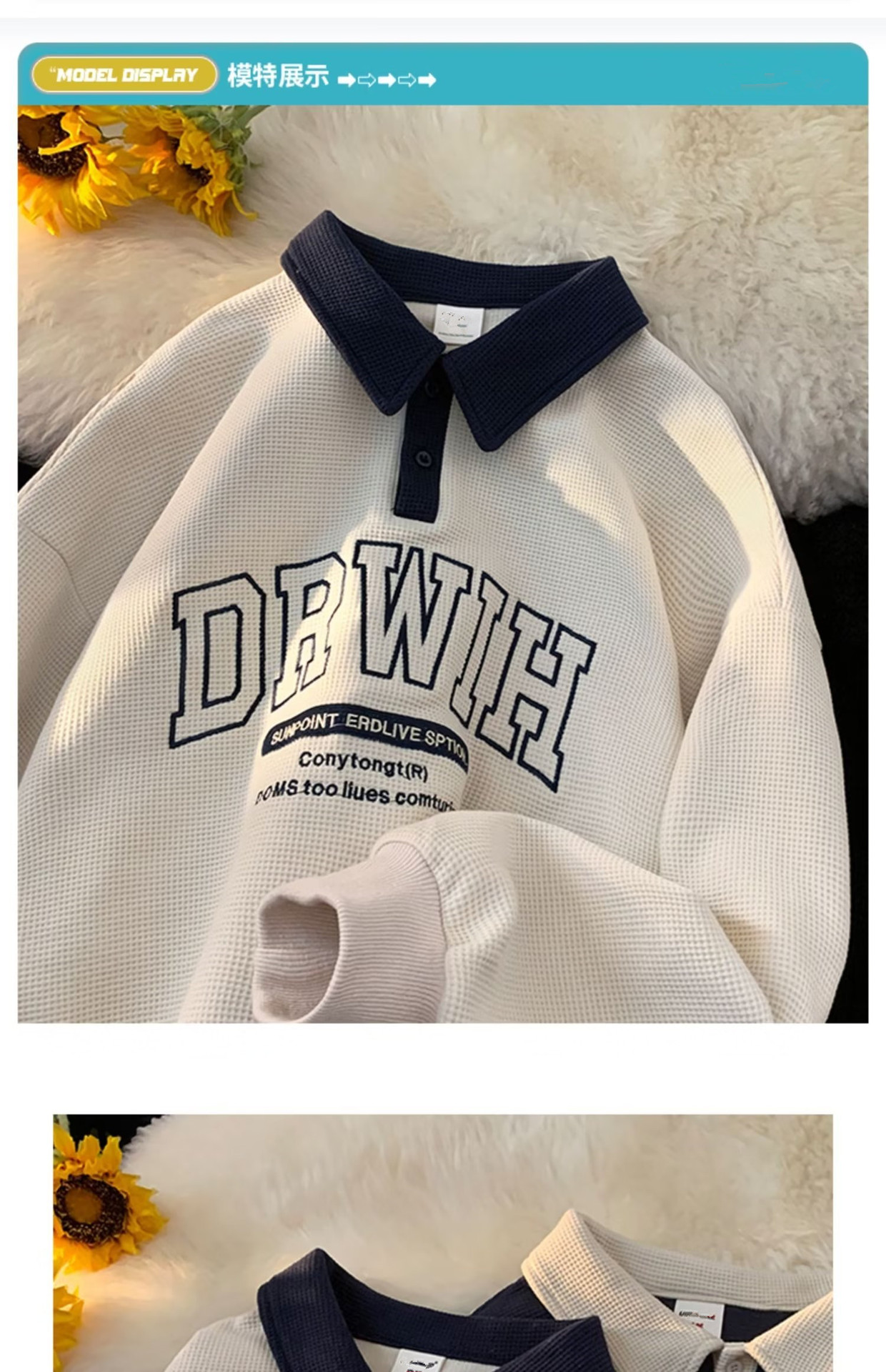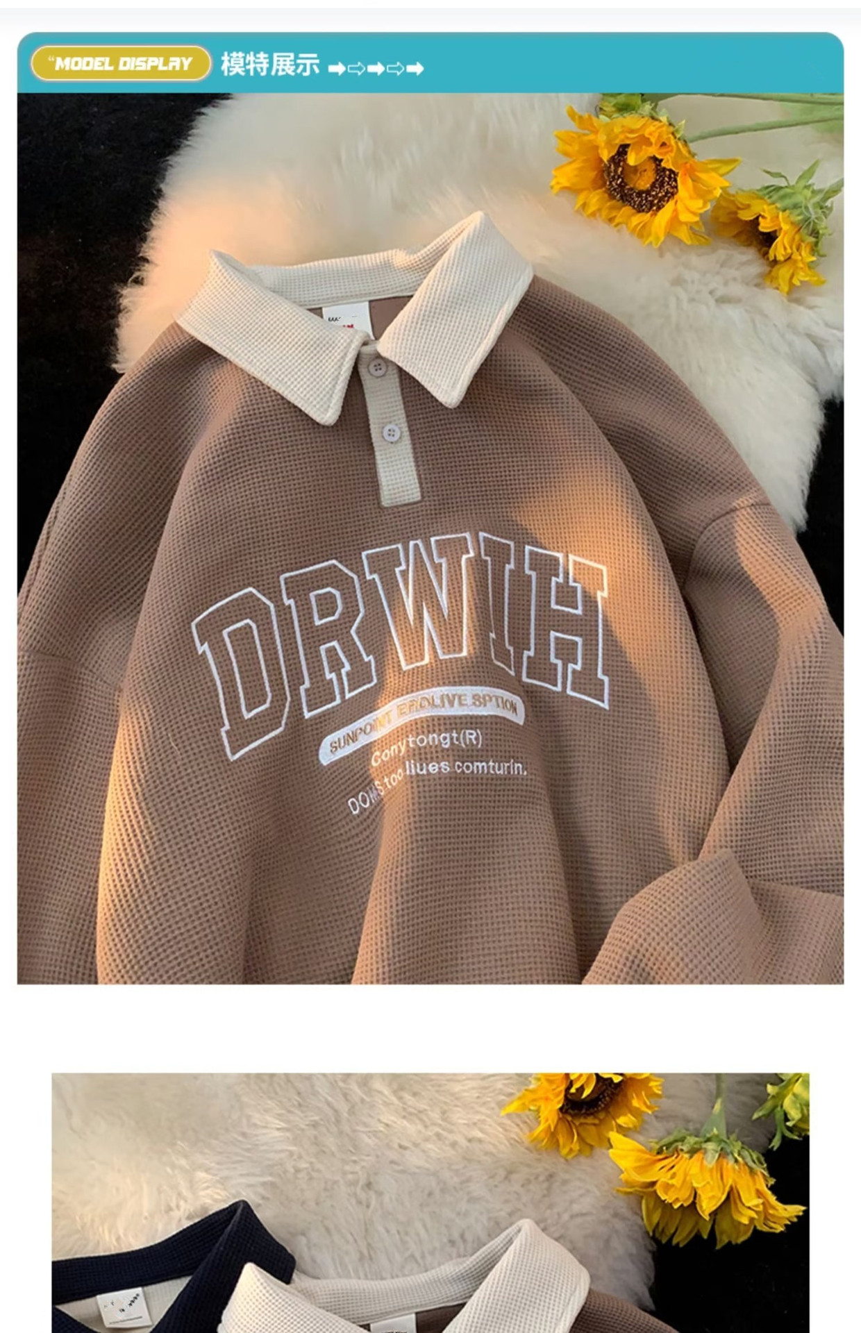 와플 폴로 셔츠 스웨터 남자 봄과 가을 커플 학생 패셔너블 루즈 일본 스타일 레트로 캐주얼 옷깃 재킷스토어 가기