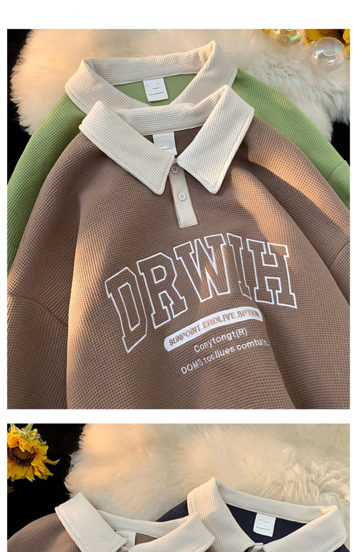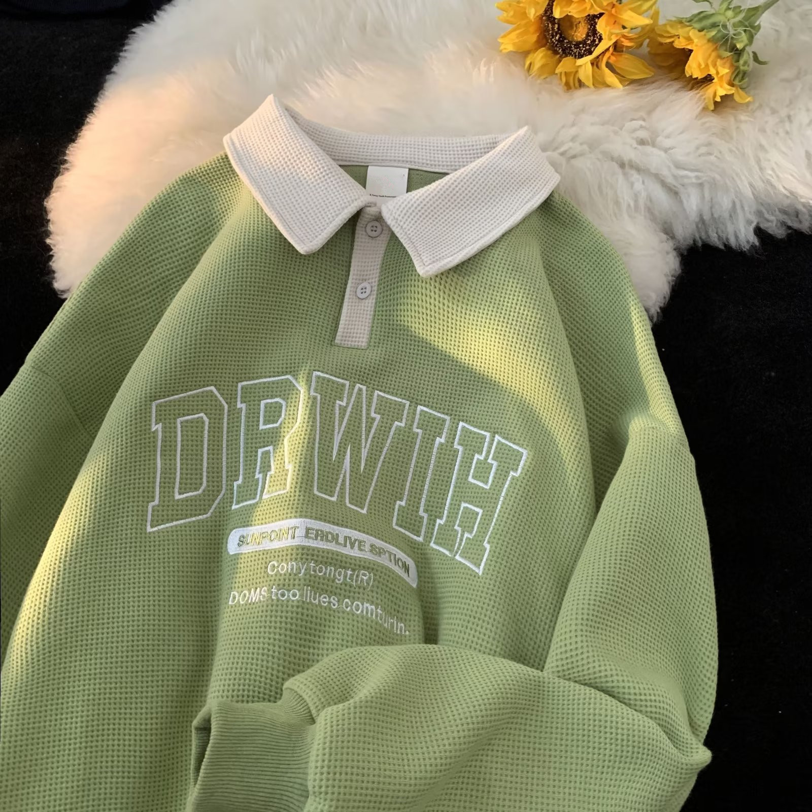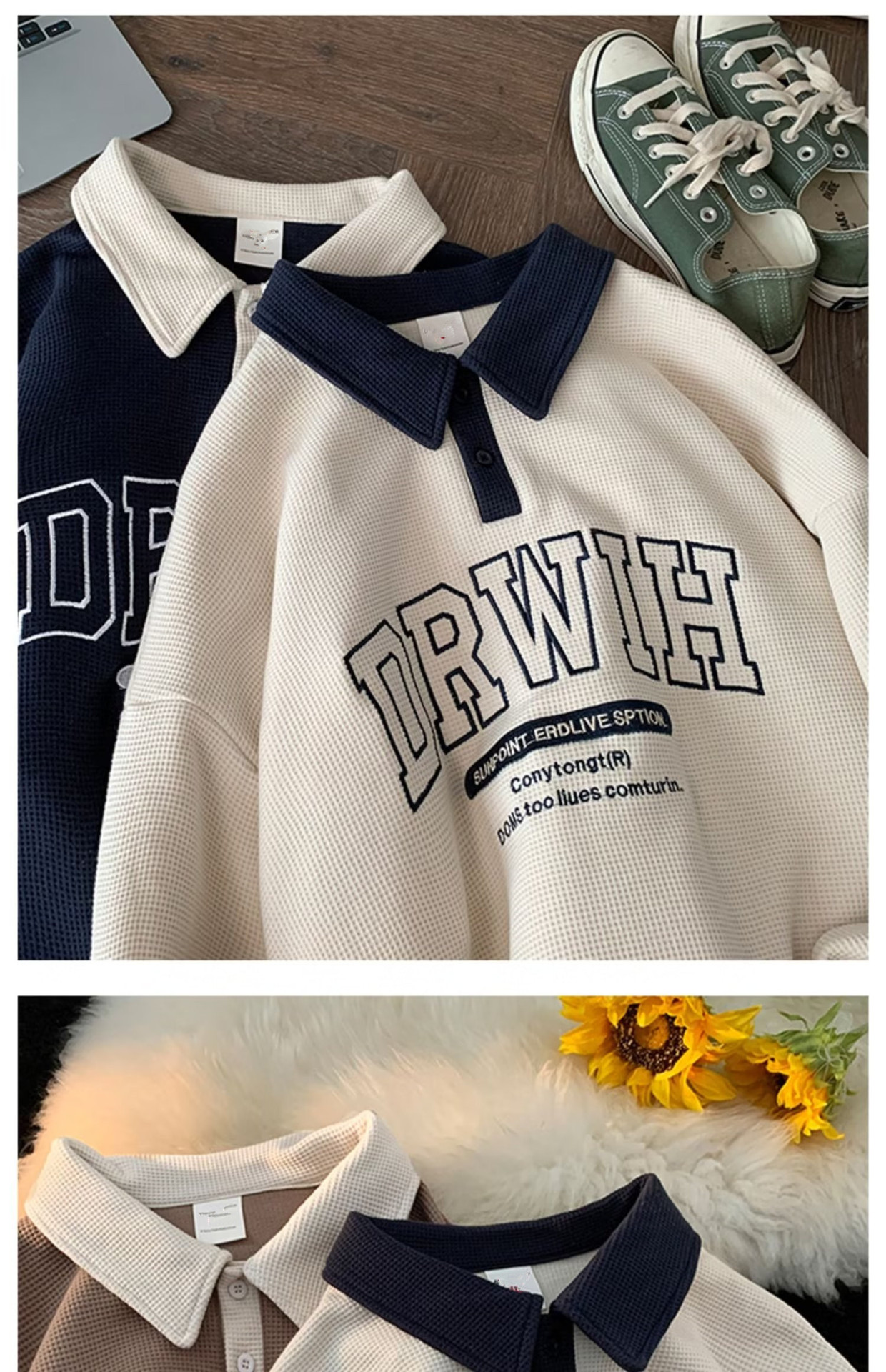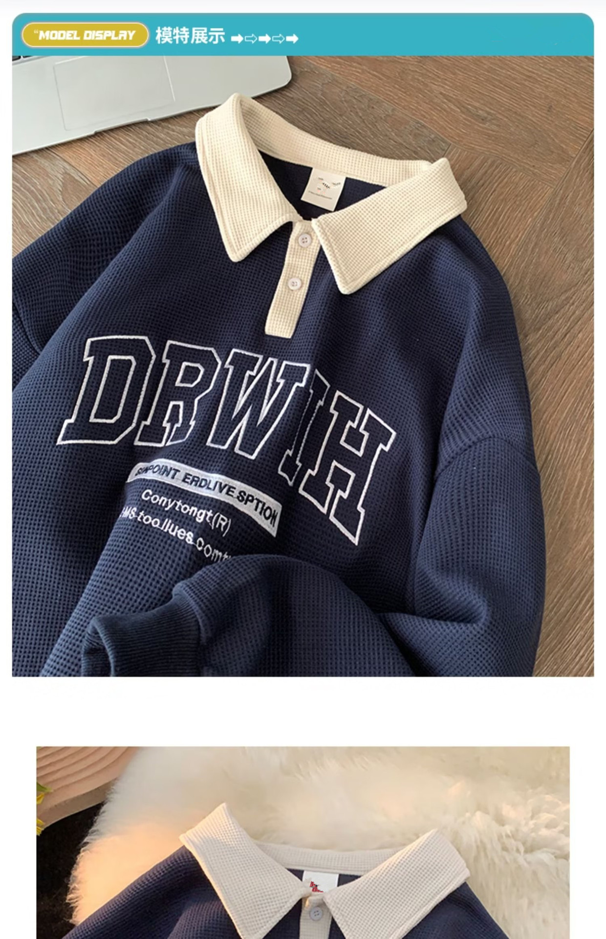와플 폴로 셔츠 스웨터 남자 봄과 가을 커플 학생 패셔너블 루즈 일본 스타일 레트로 캐주얼 옷깃 재킷스토어 가기