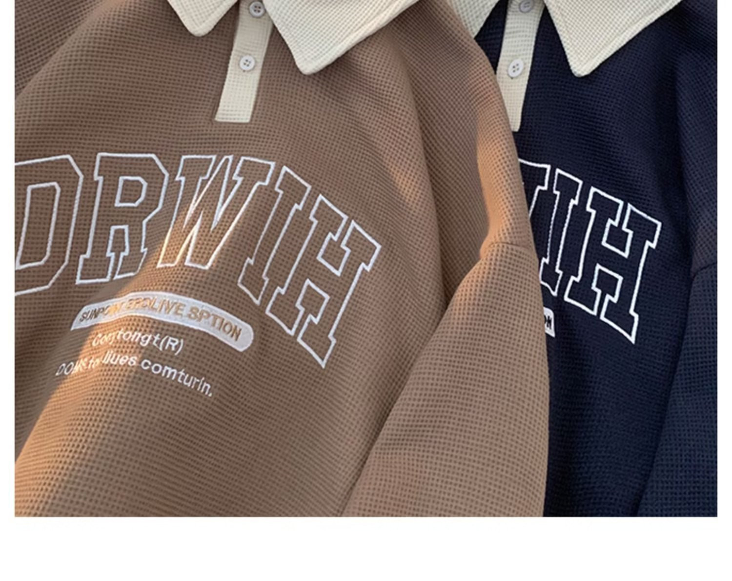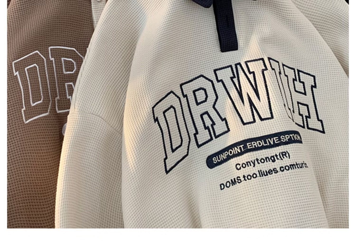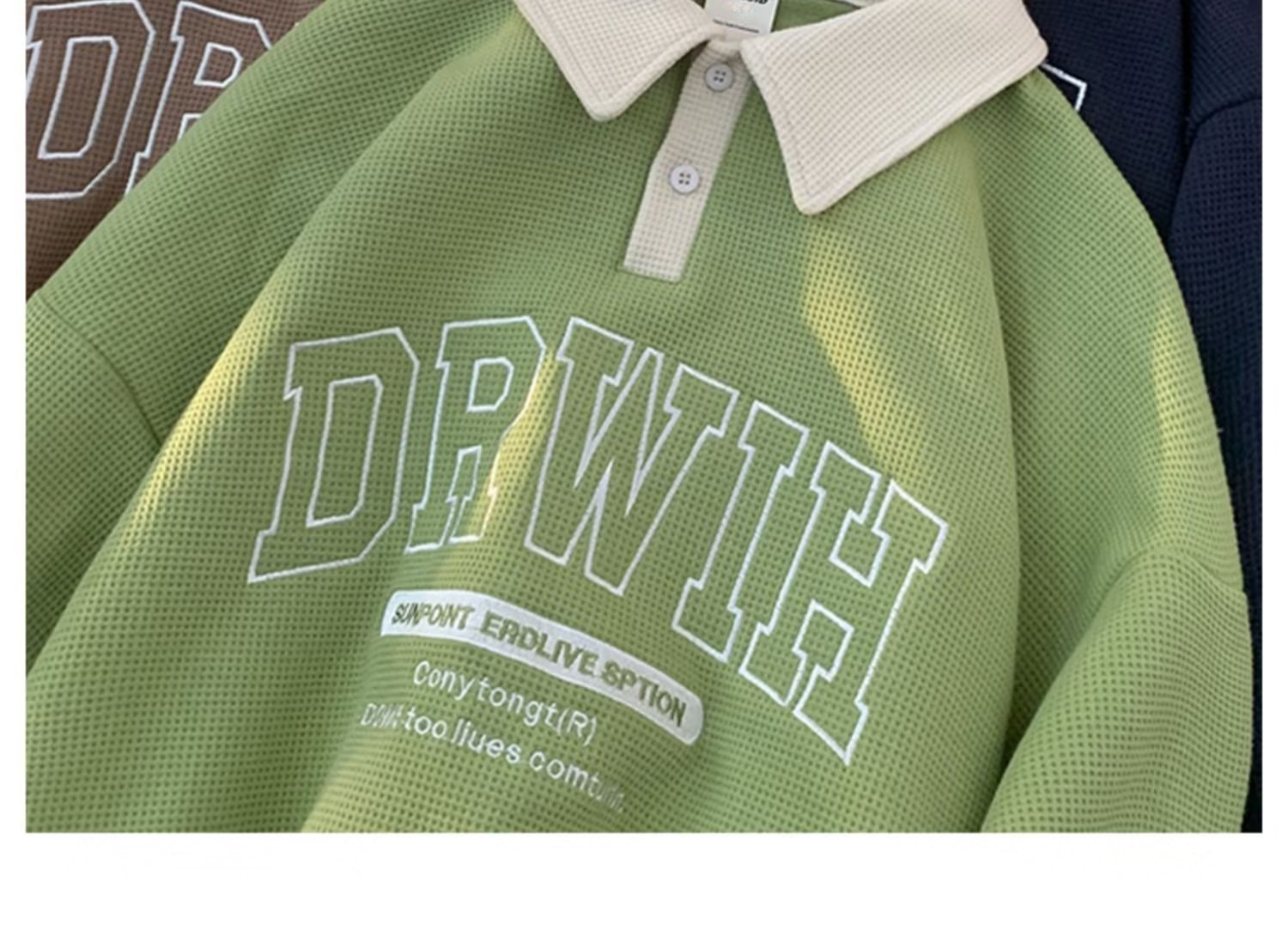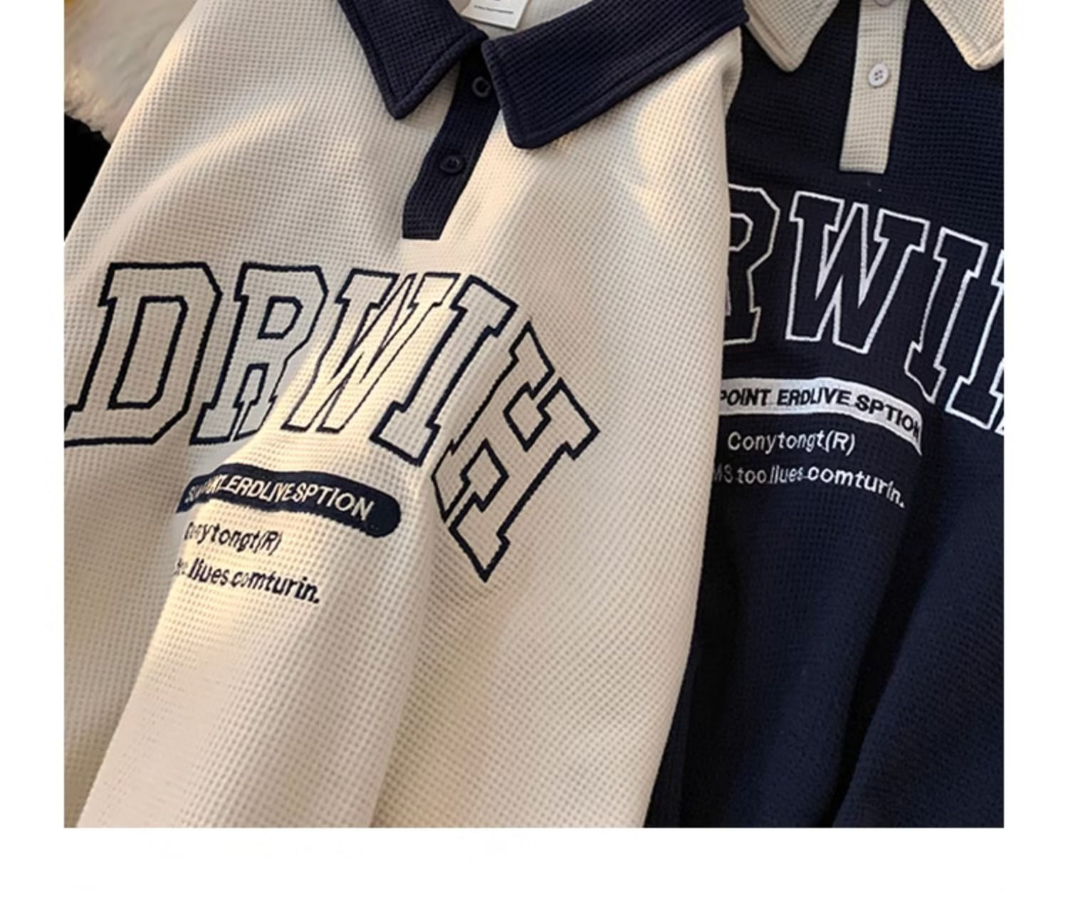 와플 폴로 셔츠 스웨터 남자 봄과 가을 커플 학생 패셔너블 루즈 일본 스타일 레트로 캐주얼 옷깃 재킷스토어 가기