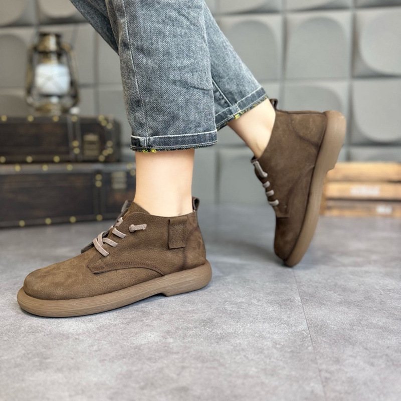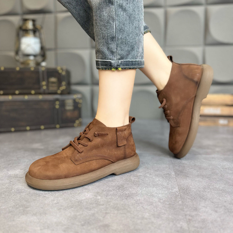 여성을위한 포레스트 스타일 레트로 누벅 가죽 레이스 업 마틴 부츠 2025 봄 여성을위한 새로운 다목적 캐주얼 플랫 부츠