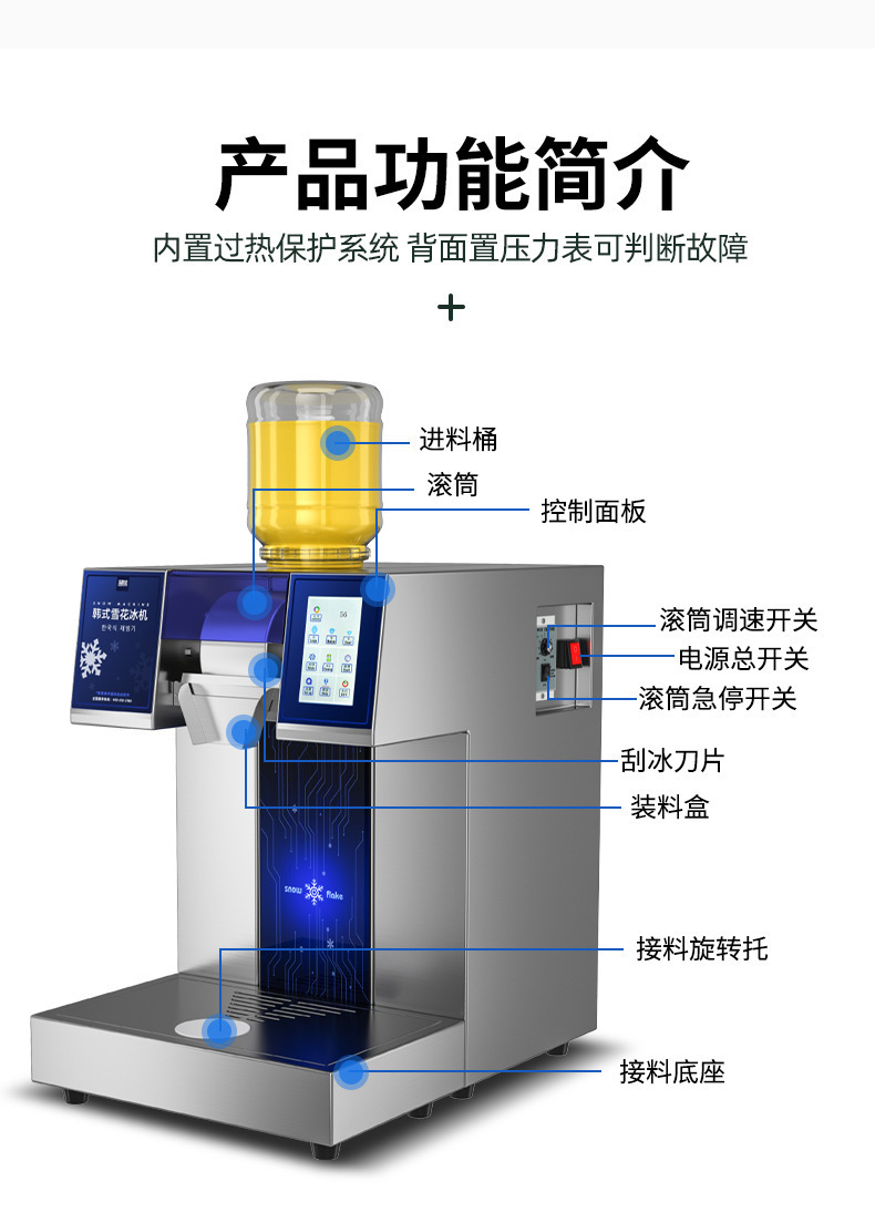 • 수냉식 액세스 수돗물 [터치스크린 모델] 300Kg/일| 무료 버킷 2개 및 눈송이 얼음 가루 회전 베이스 5팩
