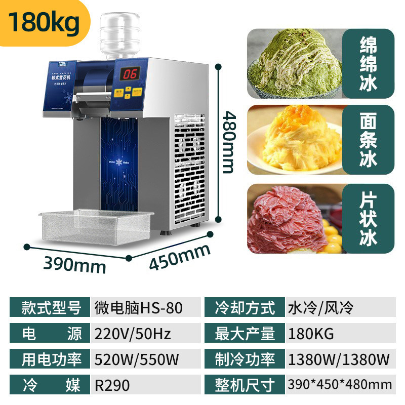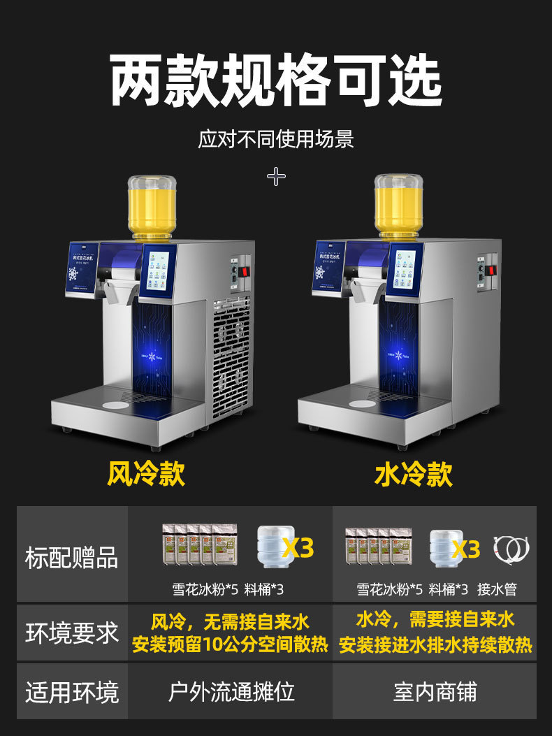 • 수냉식 연결 수돗물 [마이크로컴퓨터 모델] 60Kg/일| 물통 2개와 눈꽃 얼음가루 5팩이 함께 제공됩니다. 수냉식 모델은 수돗물을 연결해야 합니다. 공냉식 1