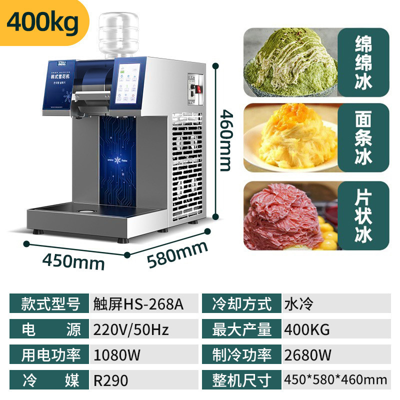 • 수냉식 액세스 수돗물 [터치스크린 모델] 400Kg/일| 무료 버킷 2개 및 눈송이 얼음 가루 회전 베이스 5팩
