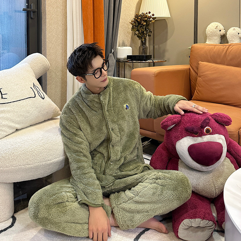 [깨진 코드 복지] 가을과 겨울 산호 양털 커플 잠옷 여성 남성 잠옷 홈 옷 깨진 코드 초 살해