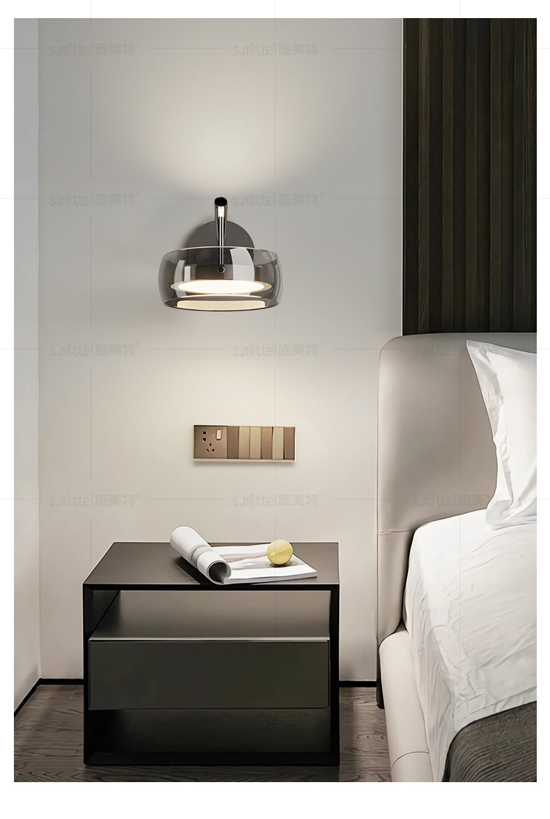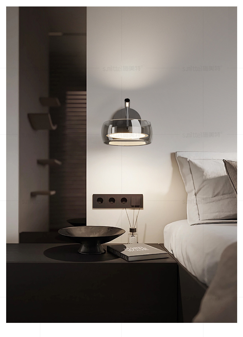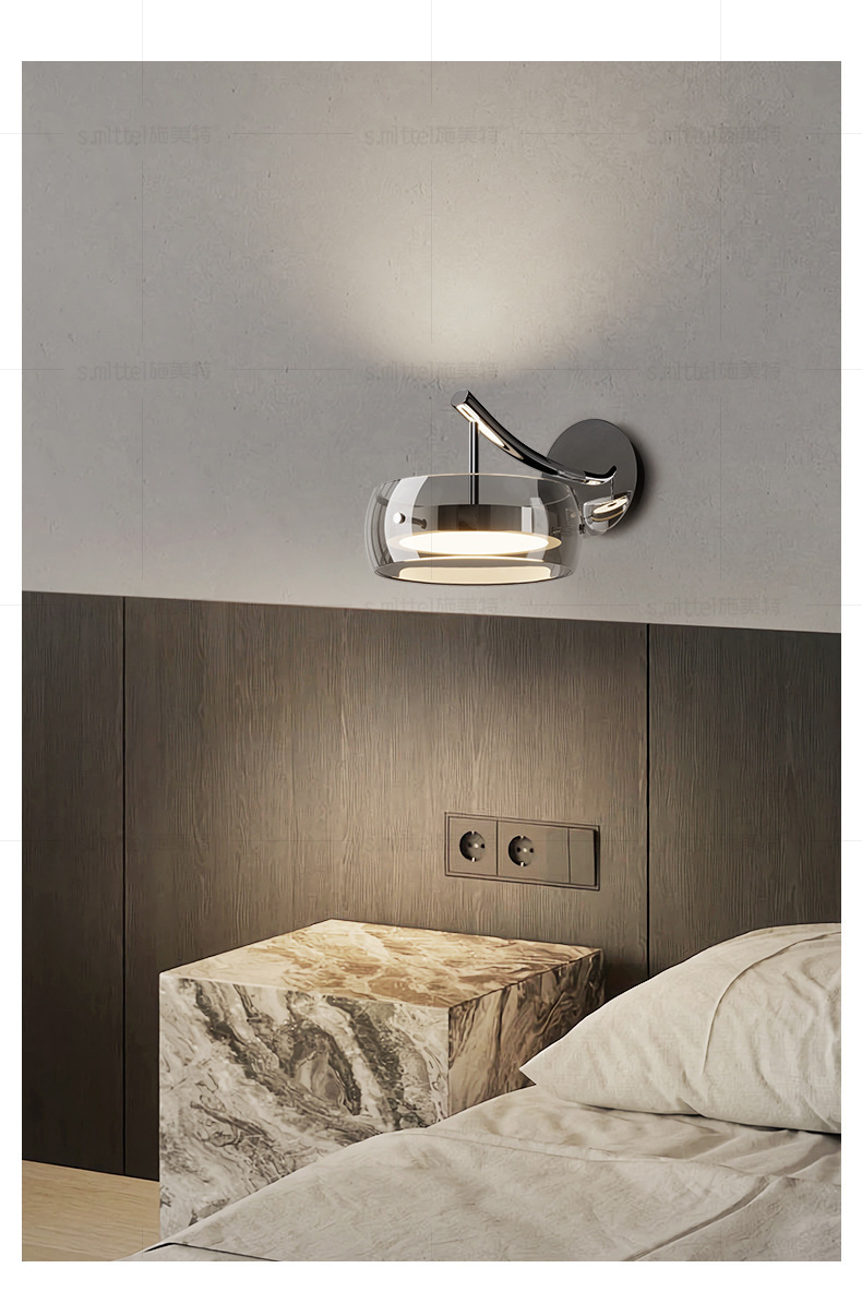 가벼운 고급 침실 침대 옆 벽 램프 2024 새로운 디자이너 복도 거실 배경 벽 유리 벽 램프스토어 가기
