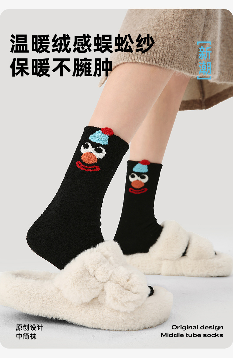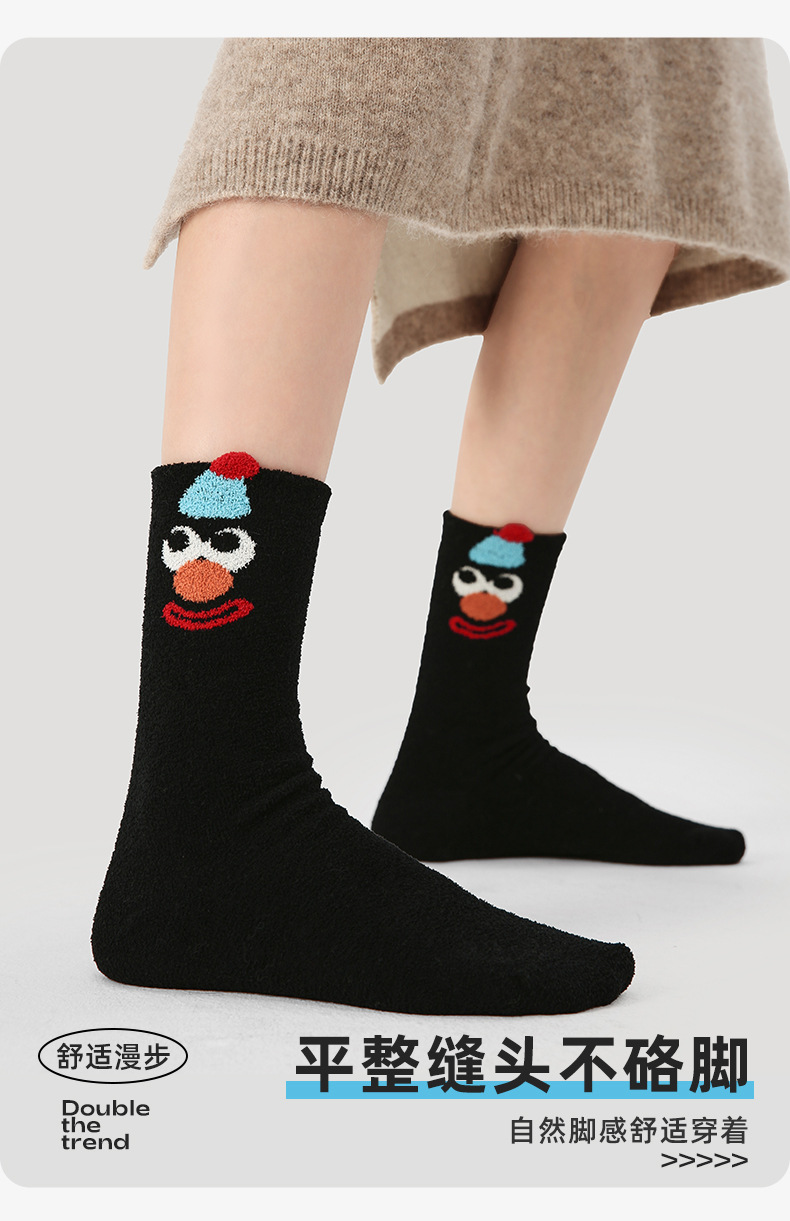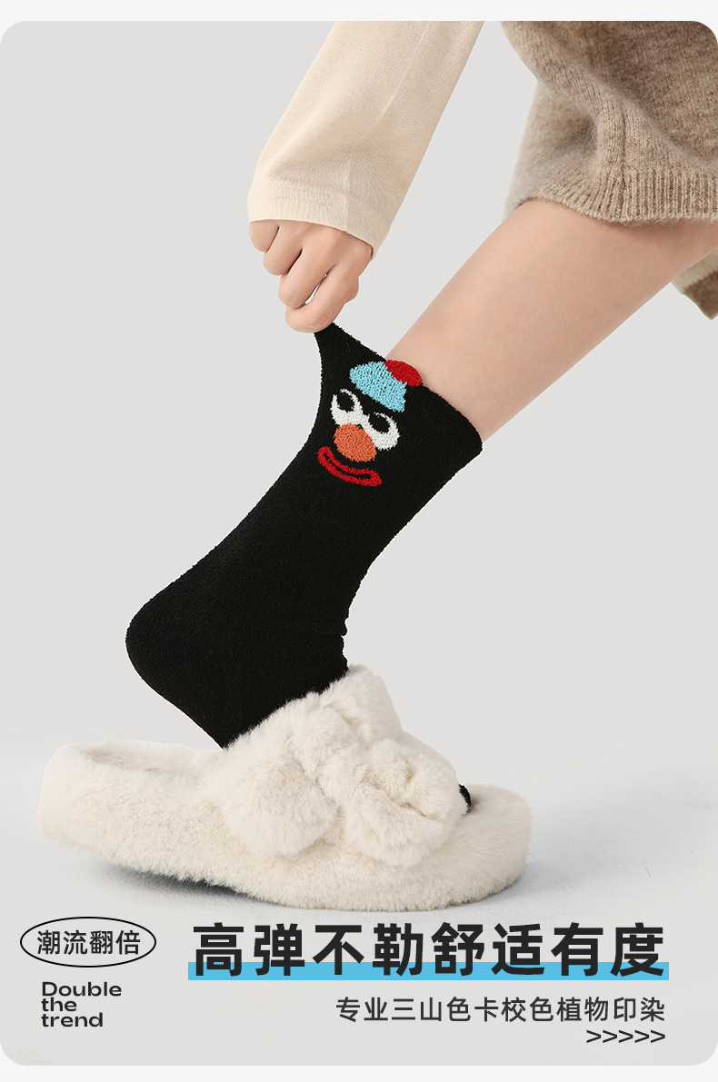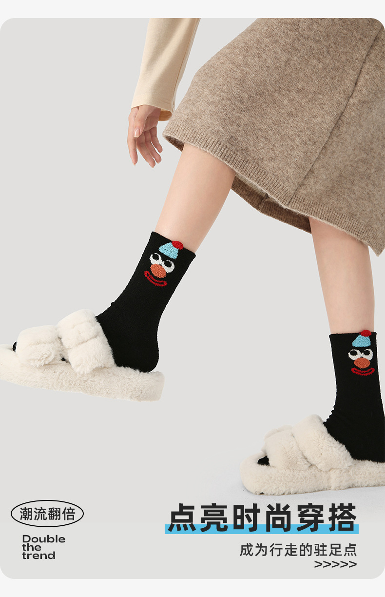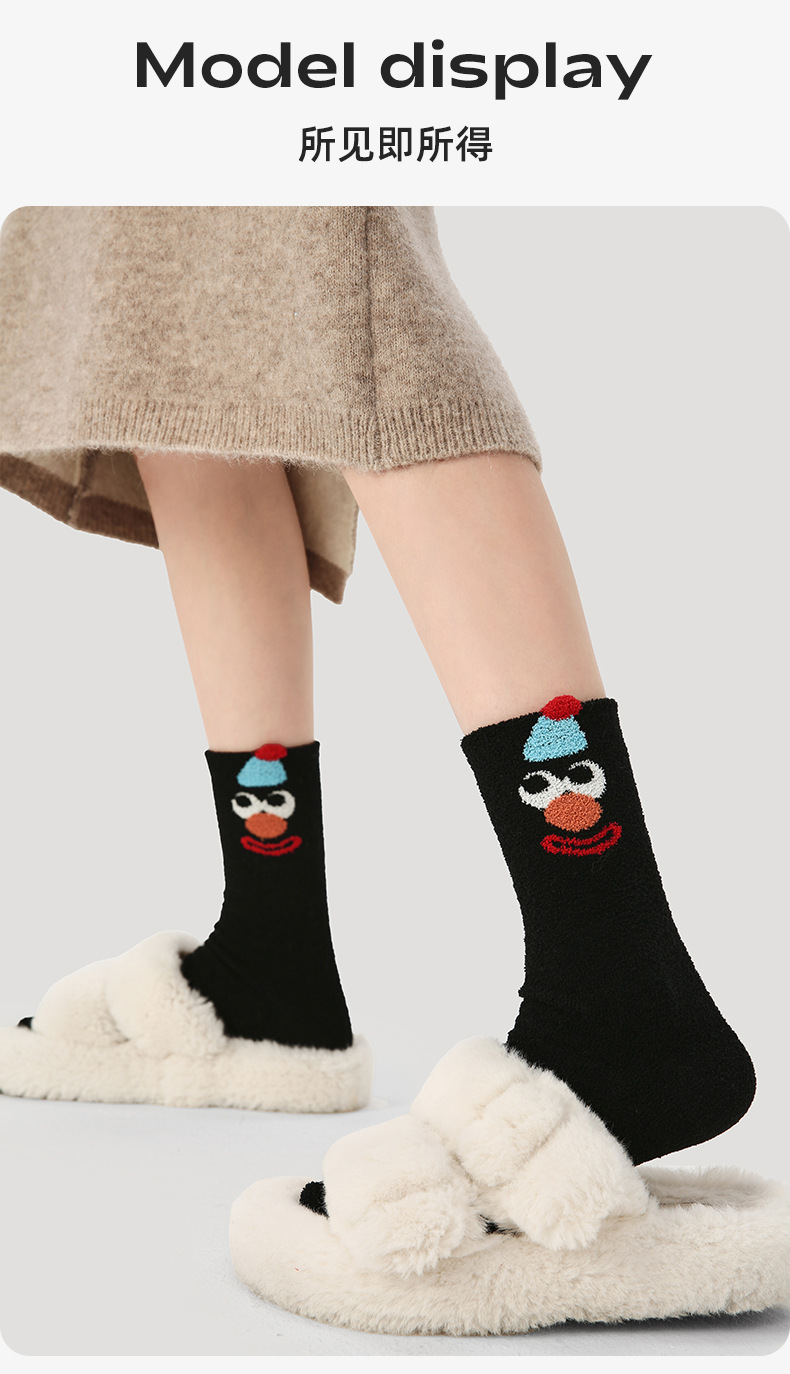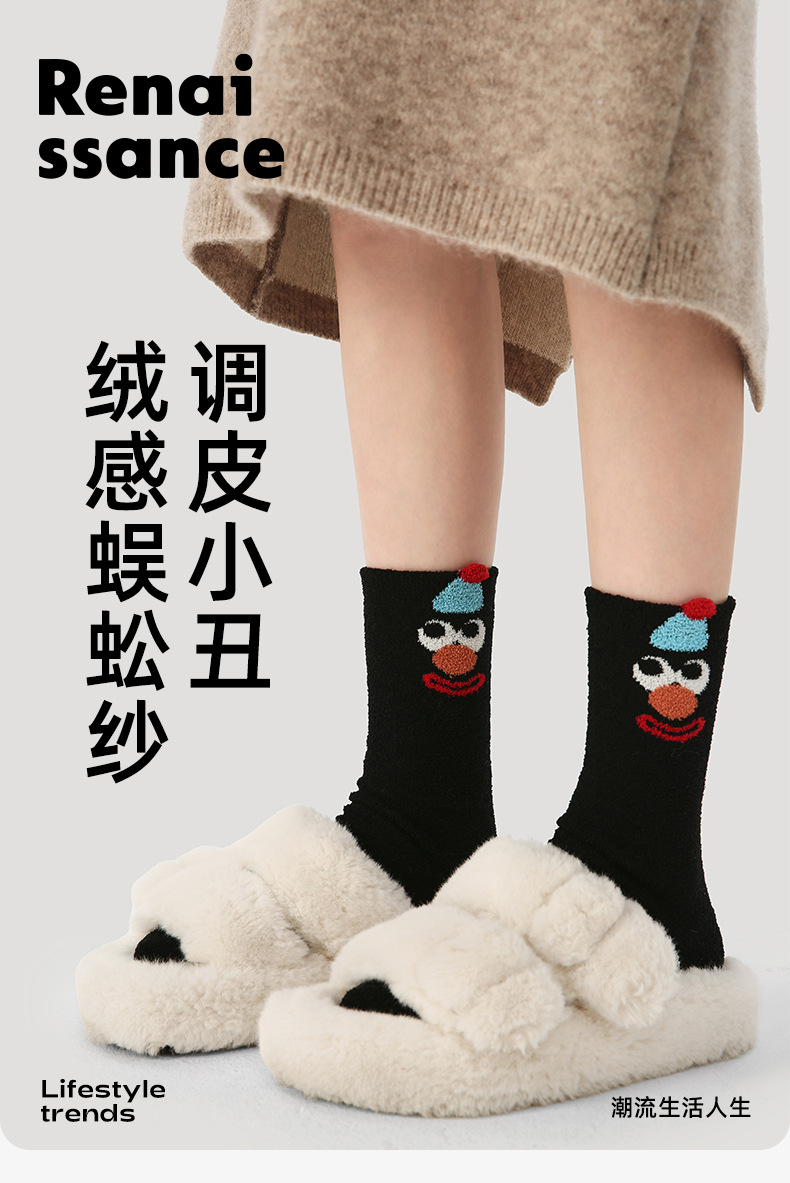 르네상스 양말 여자 기모 두꺼운 올매치 Ins 트렌디 한 모방 밍크 벨벳 장난 꾸러기 광대 가을 겨울 양말