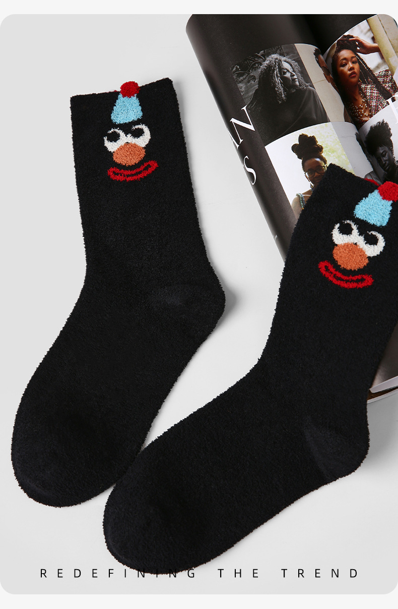 르네상스 양말 여자 기모 두꺼운 올매치 Ins 트렌디 한 모방 밍크 벨벳 장난 꾸러기 광대 가을 겨울 양말스토어 가기
