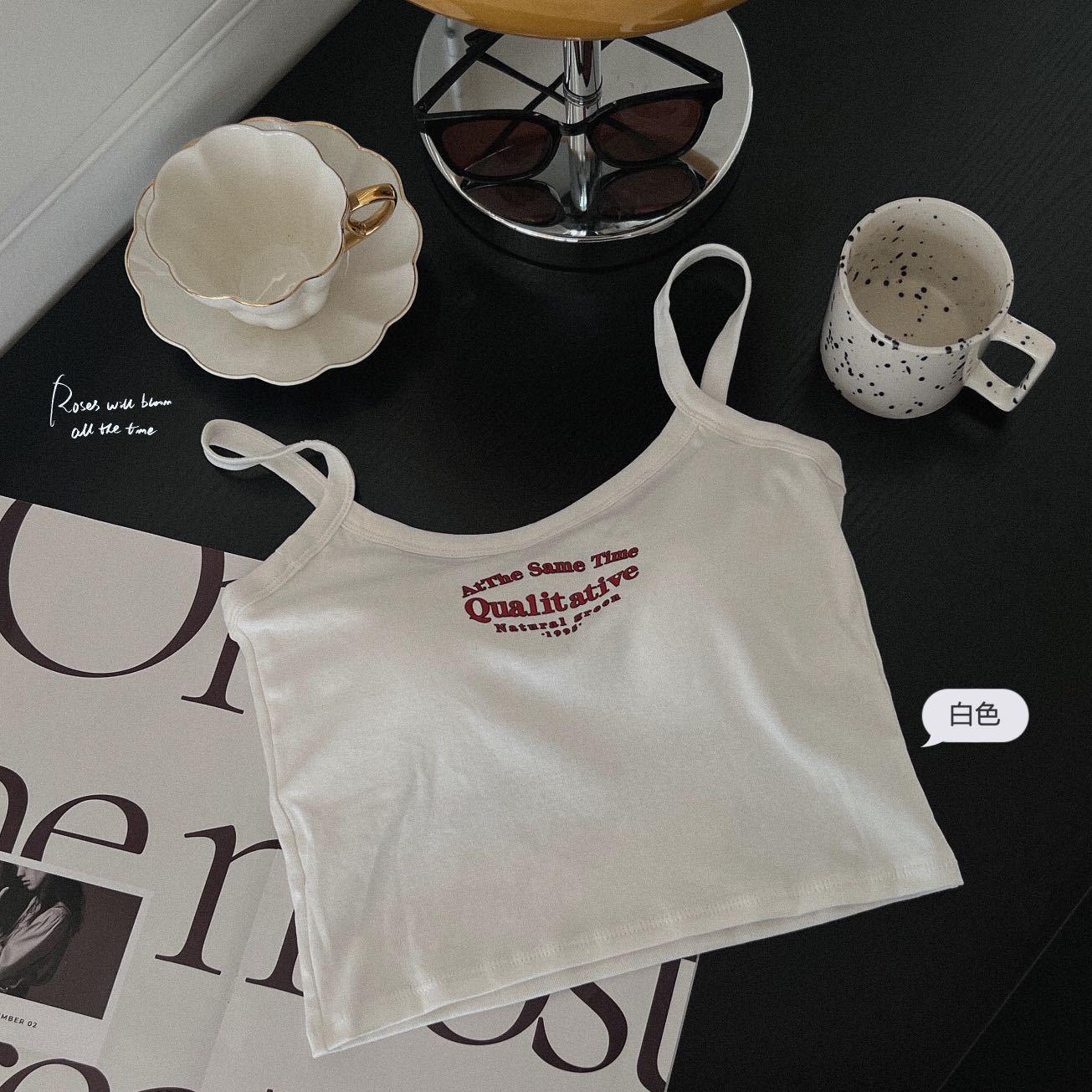 여름 달콤하고 매운 편지 인쇄 순수 코튼 소녀의 아름다운 뒤 조끼 작은 슬링 여성 외모 조끼 민소매 기본 탑