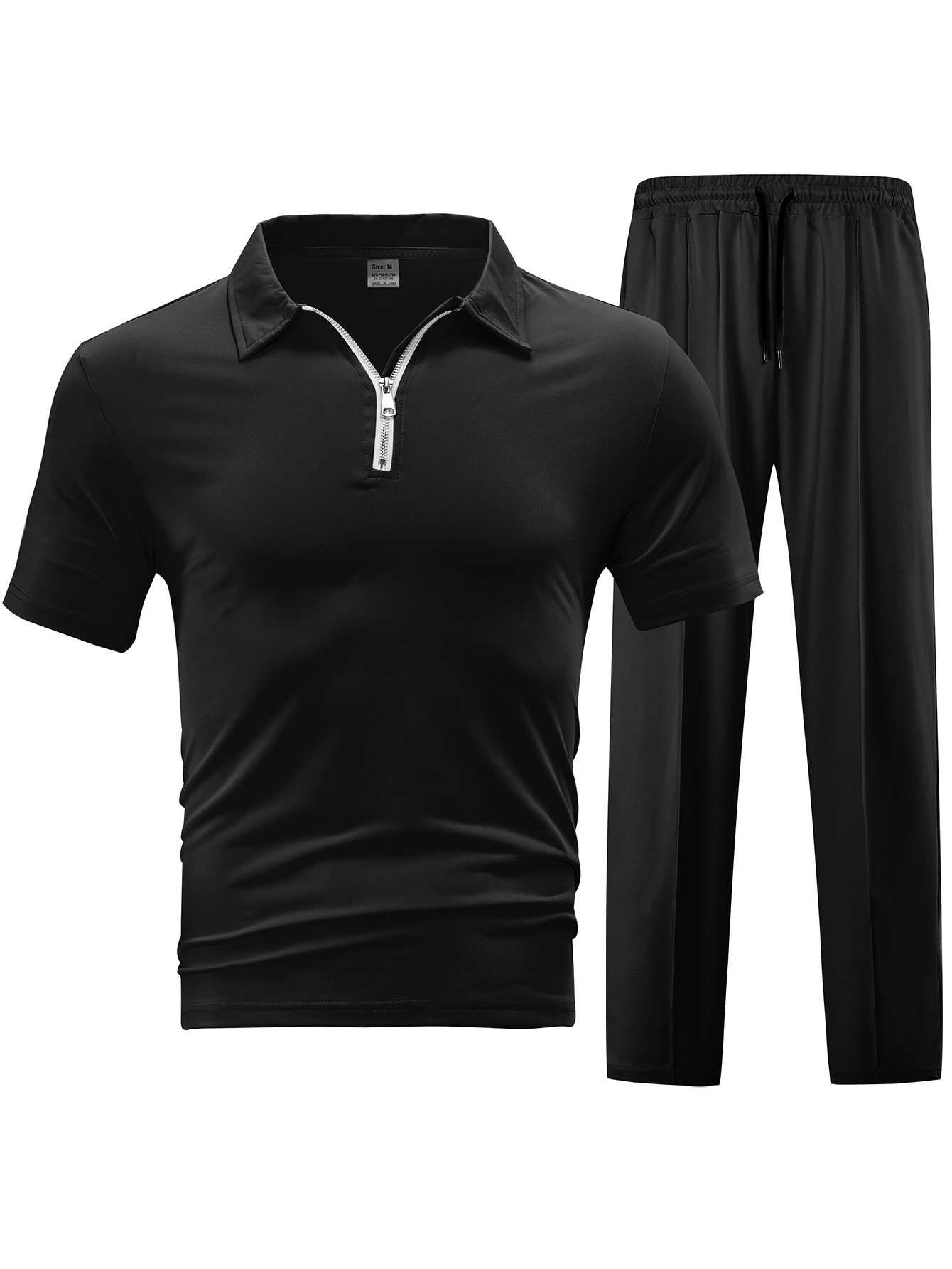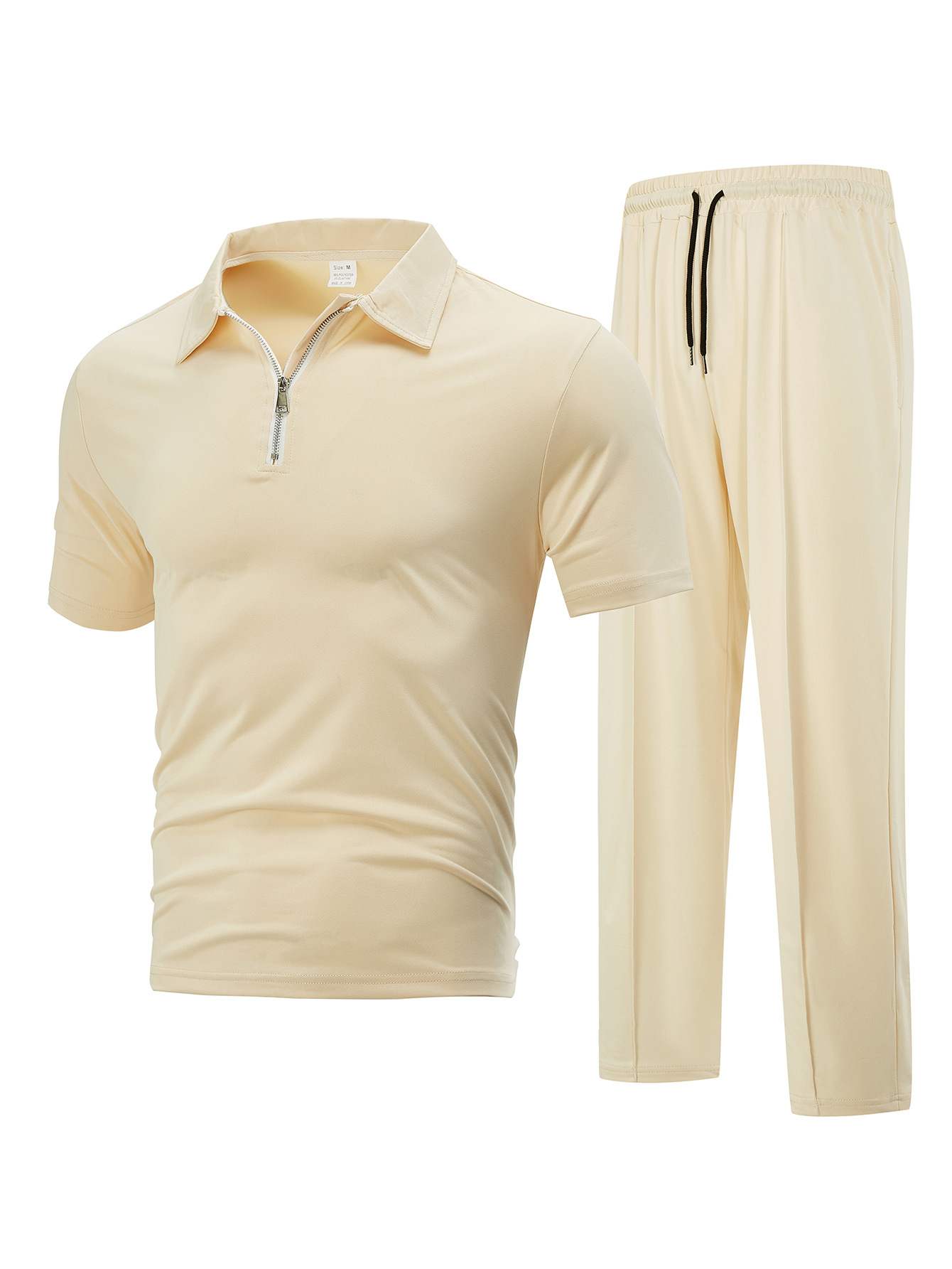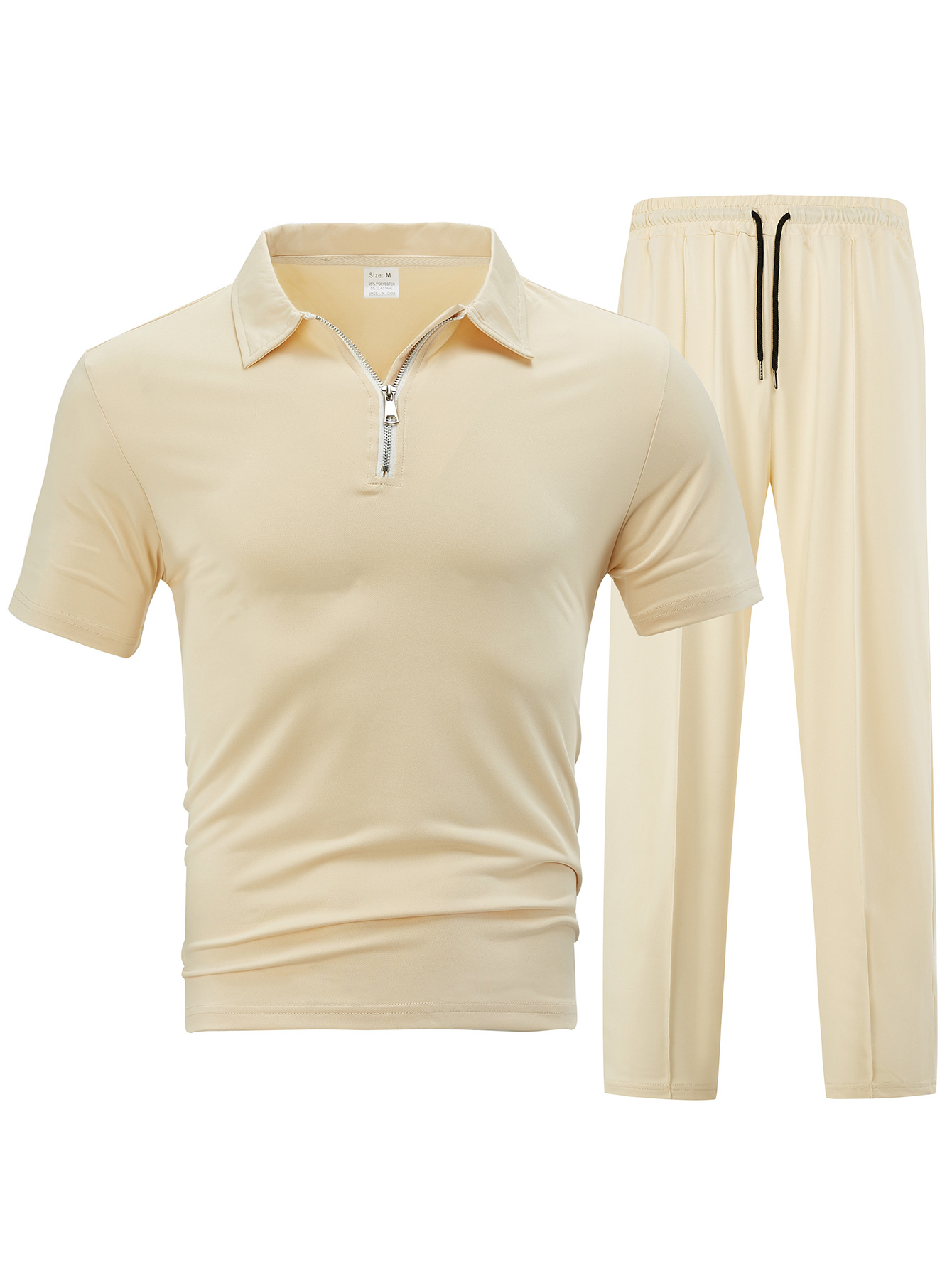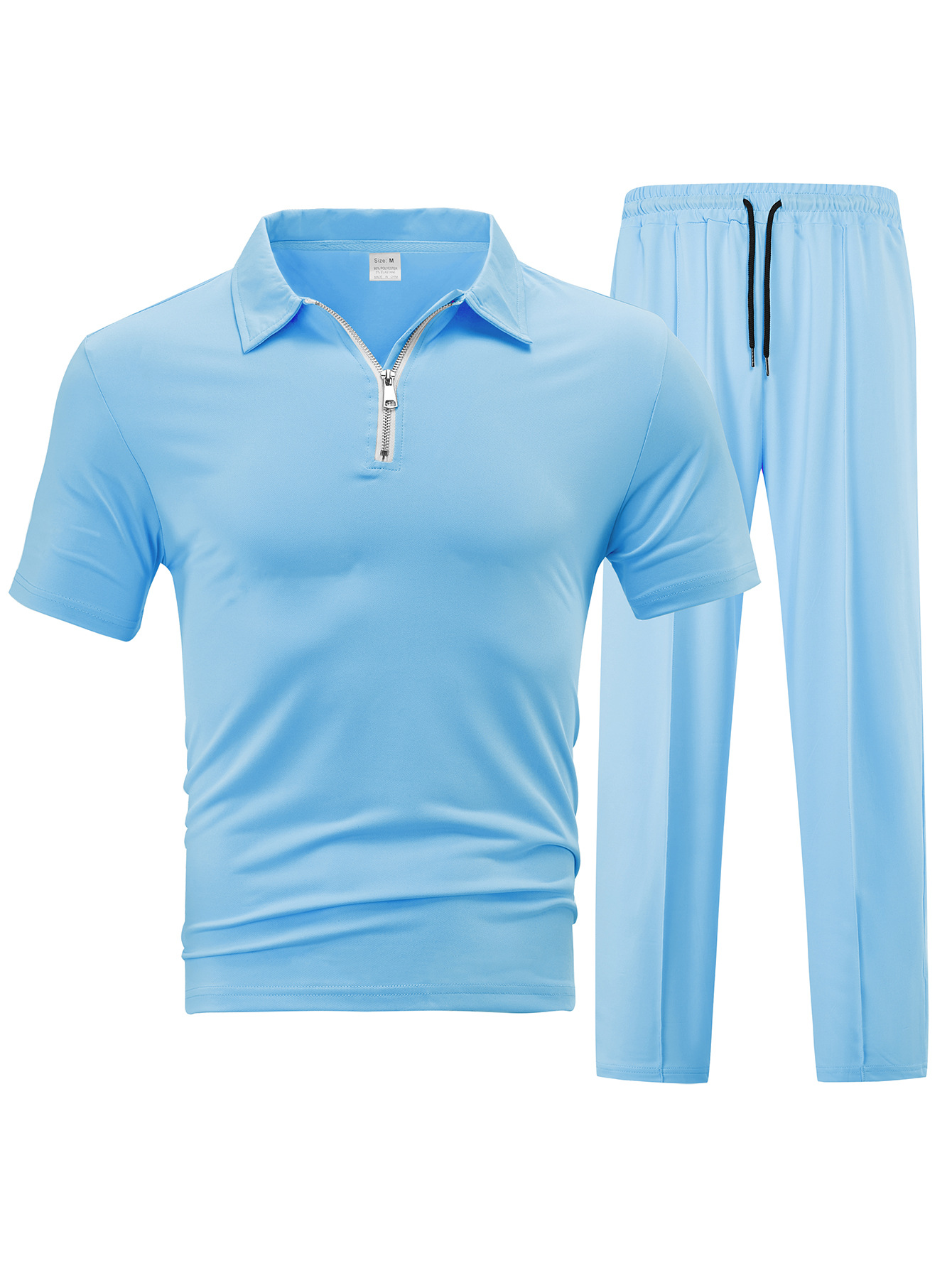2025 여름 크로스보더 2피스 남성용 라펠 지퍼 반팔 바지 캐주얼 스포츠 슈트 패션 폴로 셔츠