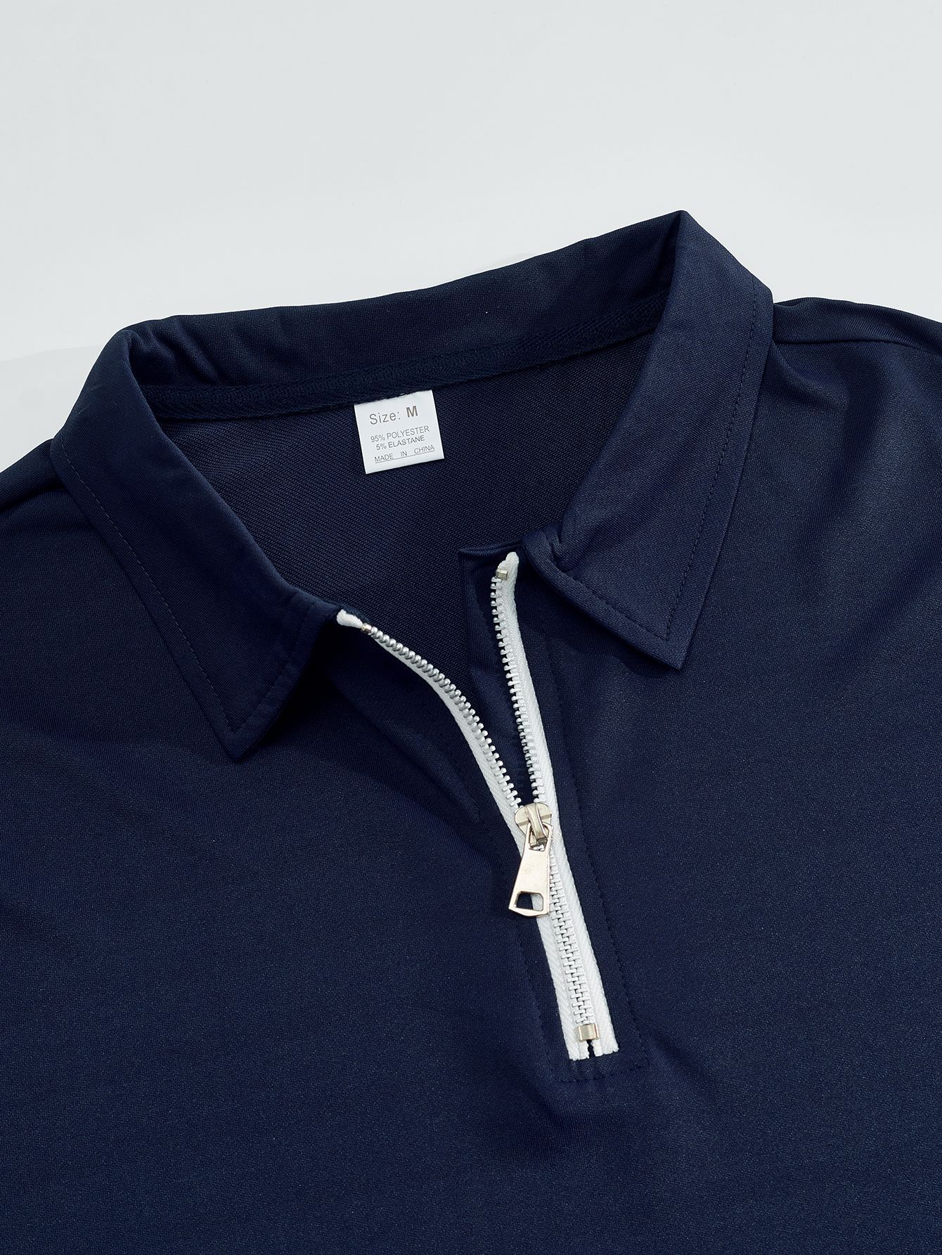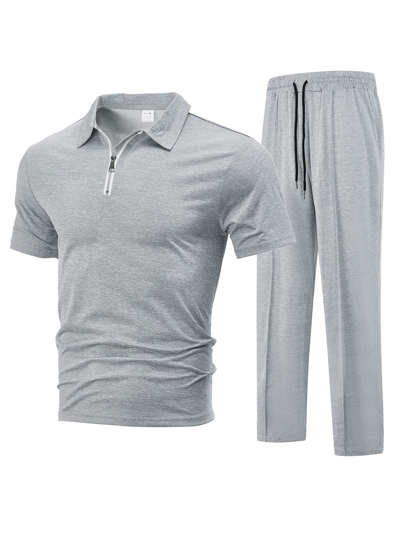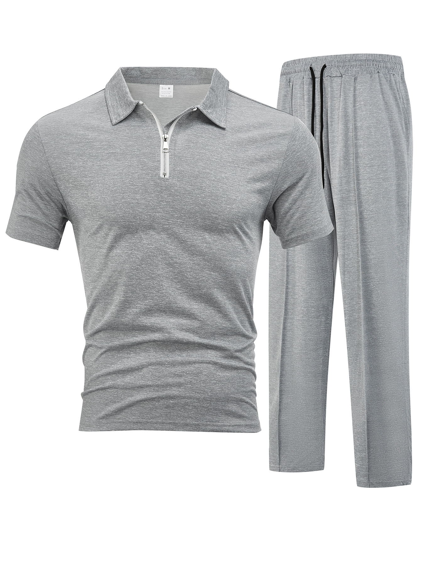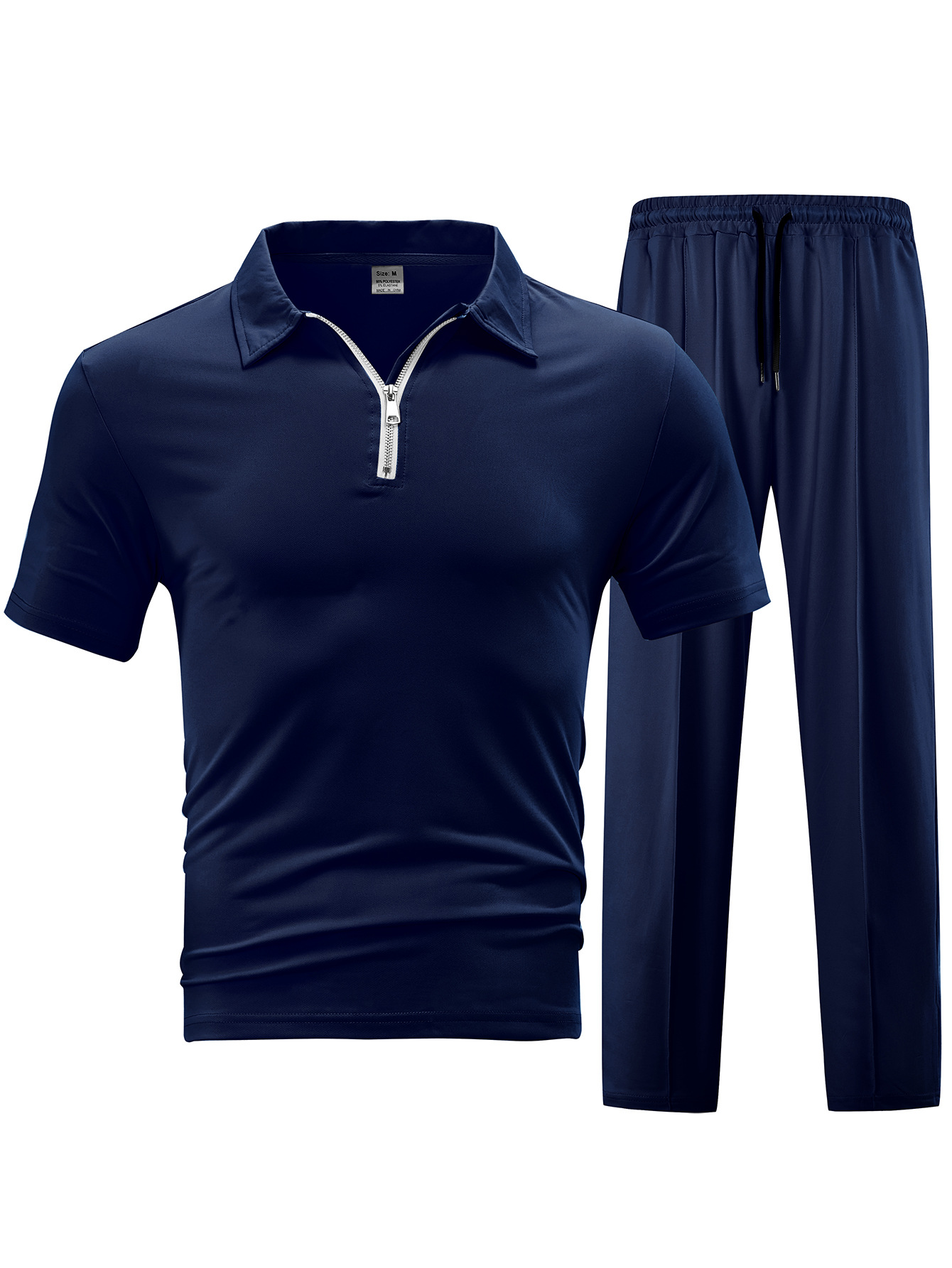 2025 여름 크로스보더 2피스 남성용 라펠 지퍼 반팔 바지 캐주얼 스포츠 슈트 패션 폴로 셔츠