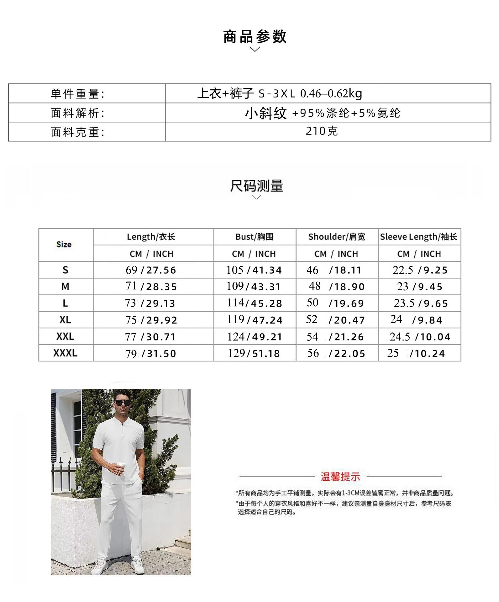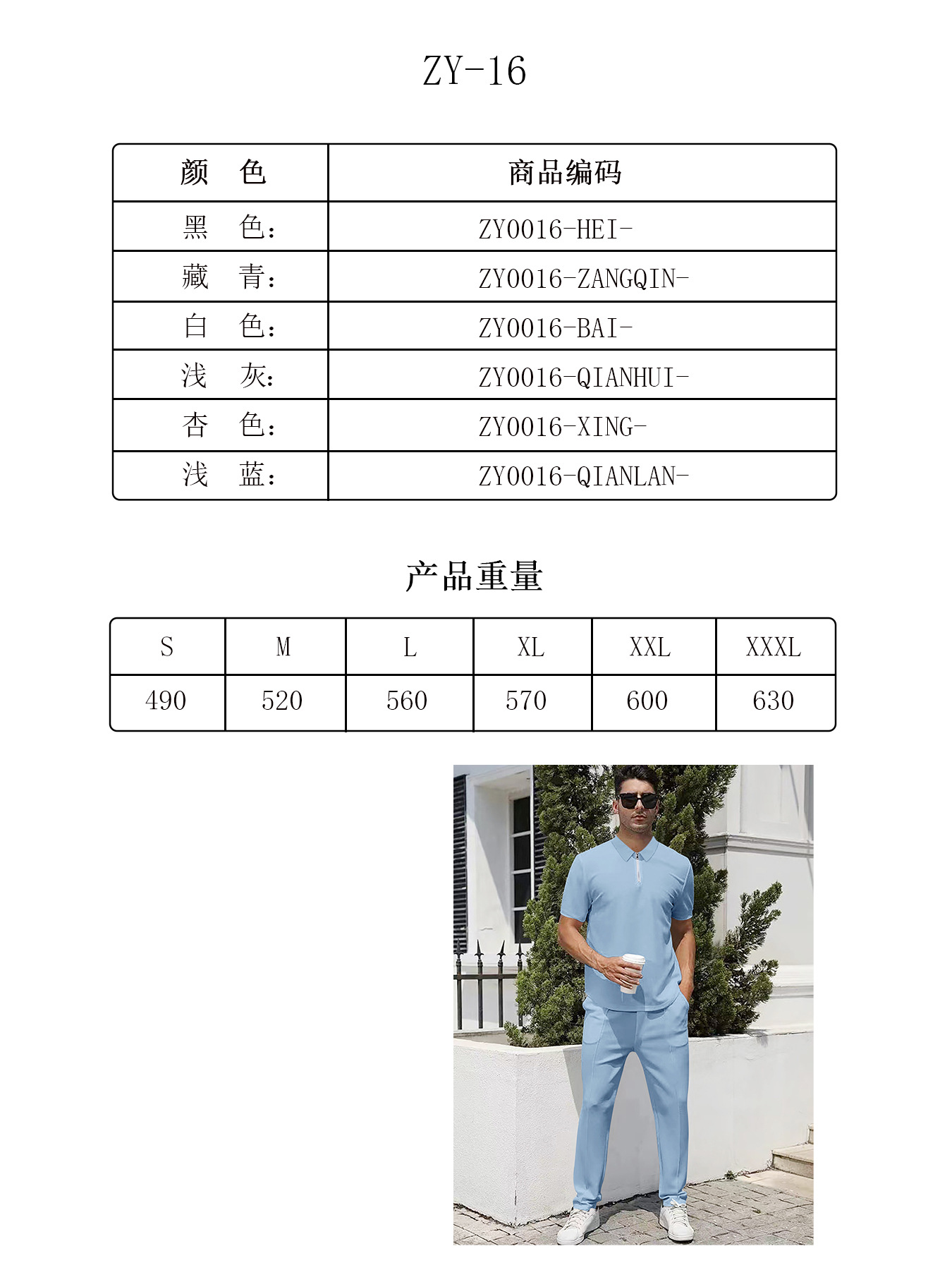2025 여름 크로스보더 2피스 남성용 라펠 지퍼 반팔 바지 캐주얼 스포츠 슈트 패션 폴로 셔츠스토어 가기