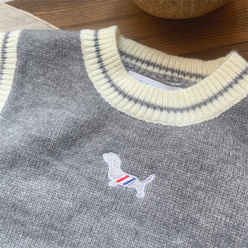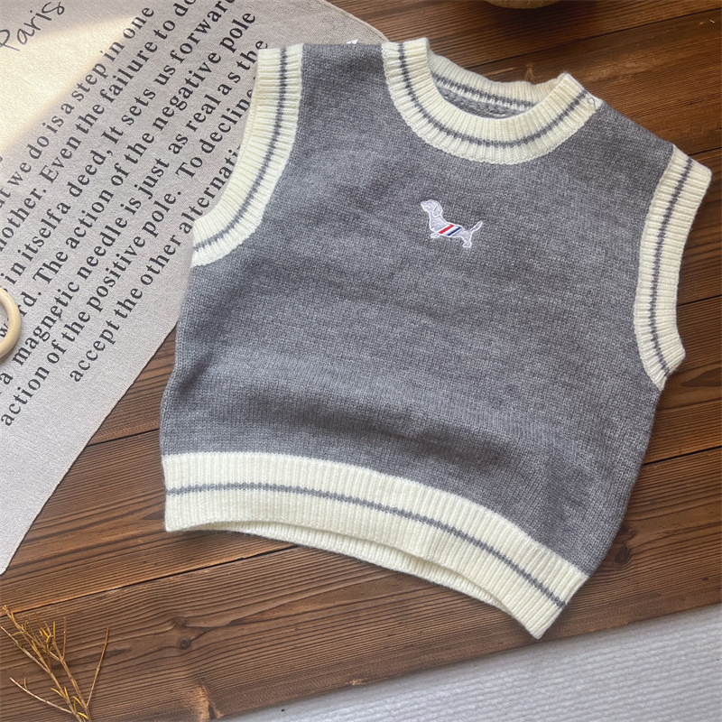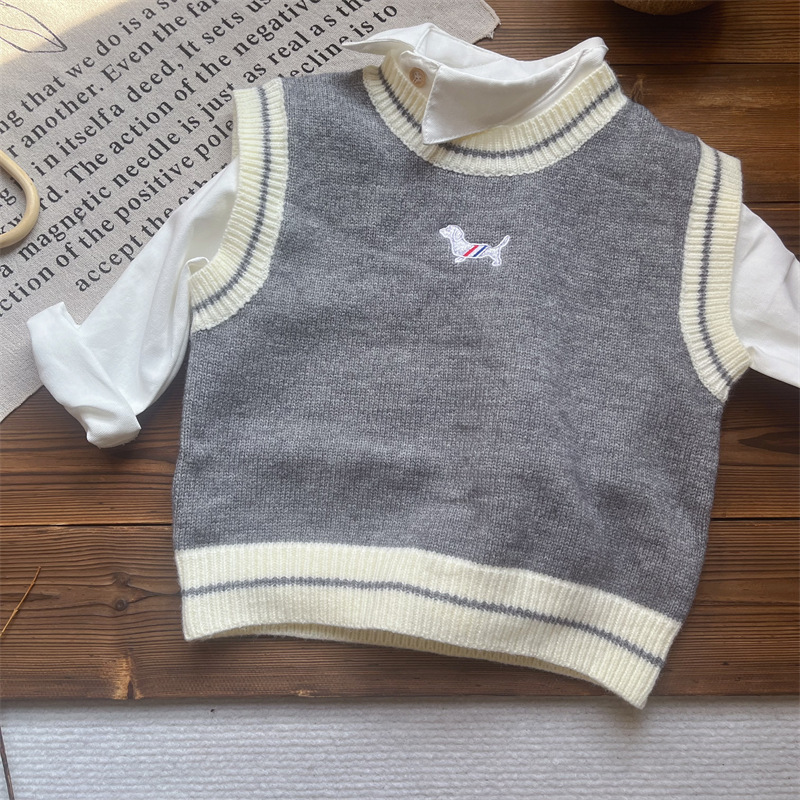 2024 가을 아동복 소년 조끼 가을 잘 생긴 외부 착용 민소매 조끼 유행 어린이 니트 조끼 가을 착용스토어 가기
