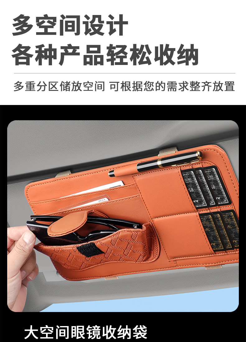 자동차 선바이저 안경 클립 차량용 다기능 수납함 영수증 클립 차량용 다기능 수납 가방 선글라스 클립
