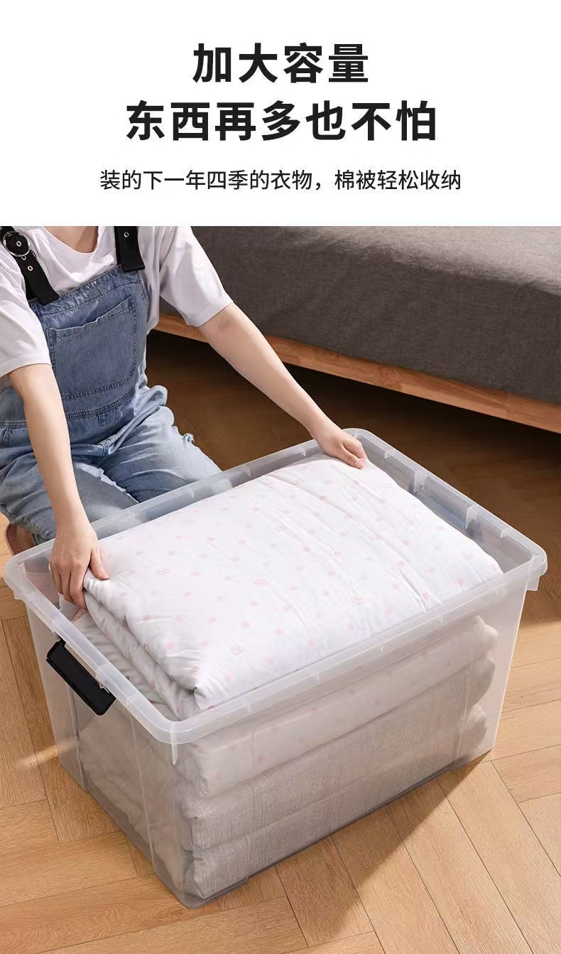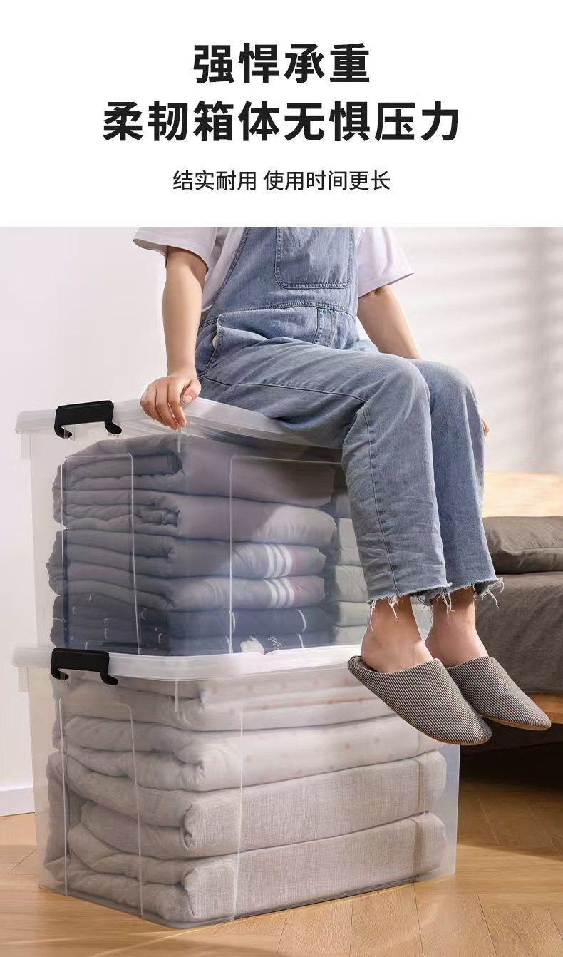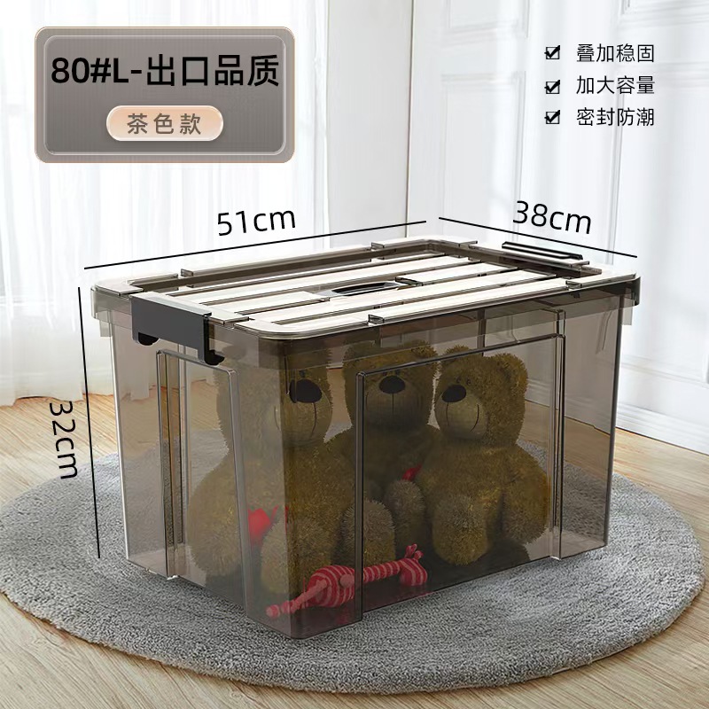 초대형 투명 저장 상자 가정용 의류 장난감 주최자 두꺼운 플라스틱 보관 상자 핸들러 저장 상자