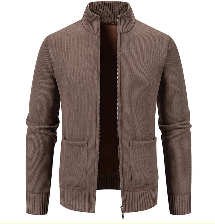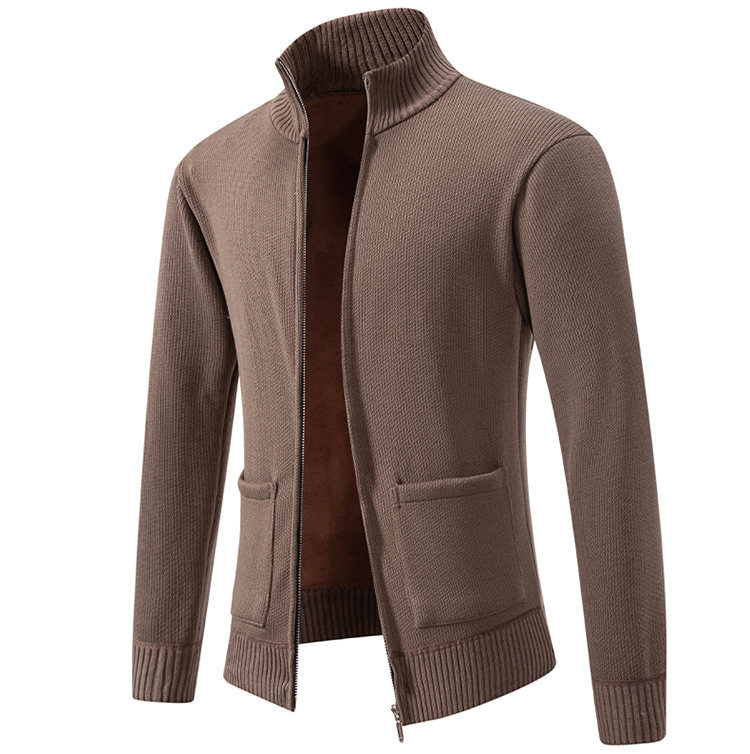 국경 간 가을 및 겨울 대외 무역 플러스 사이즈 남성 카디건 스웨터 젊고 중년의 트렌디 솔리드 컬러 칼라 지퍼 스웨터 재킷스토어 가기