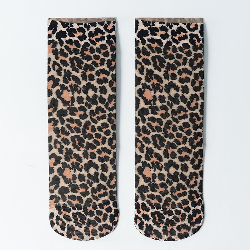 크로스보더 TEMU 시인 프린트 레오파드 패턴 스타킹, 미드 튜브 양말, 스네이크 패턴 여름용 신발, 고탄력 통기성 초박형 양말