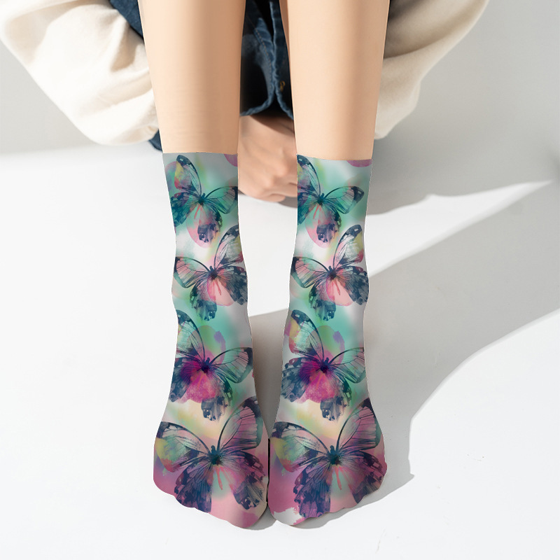 크로스보더 TEMU 시인 프린트 레오파드 패턴 스타킹, 미드 튜브 양말, 스네이크 패턴 여름용 신발, 고탄력 통기성 초박형 양말스토어 가기