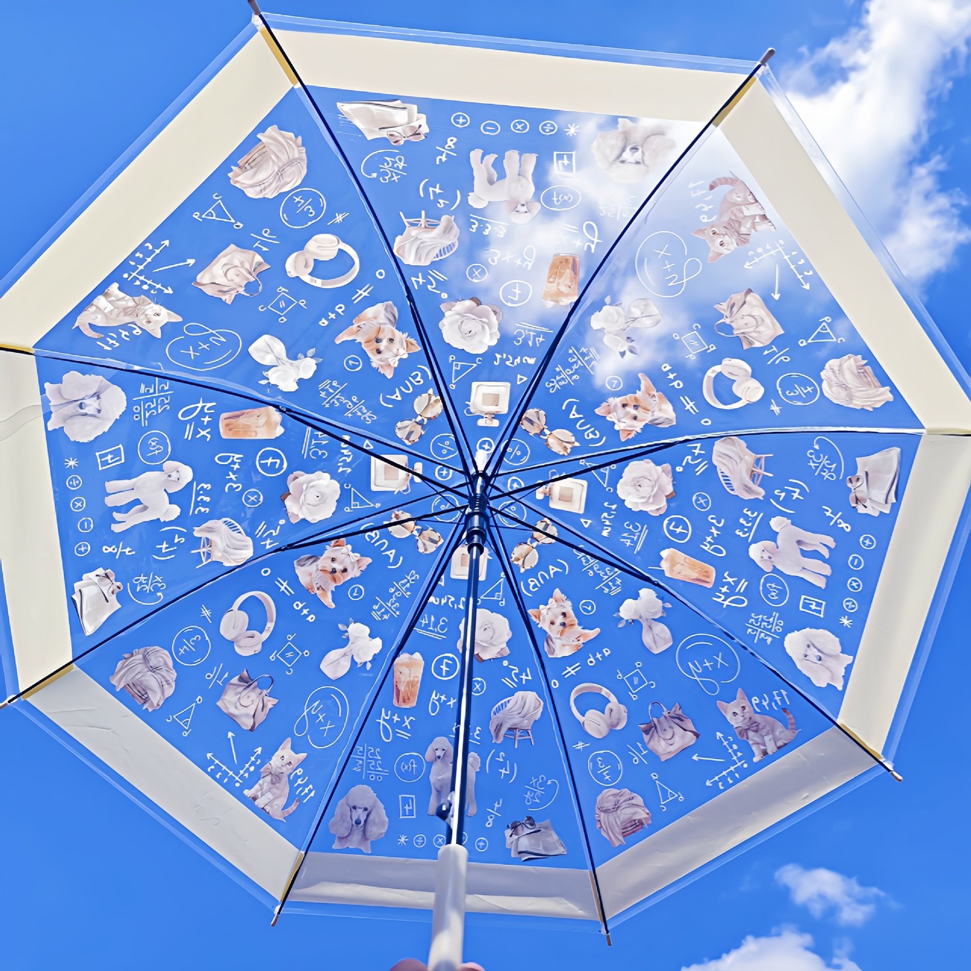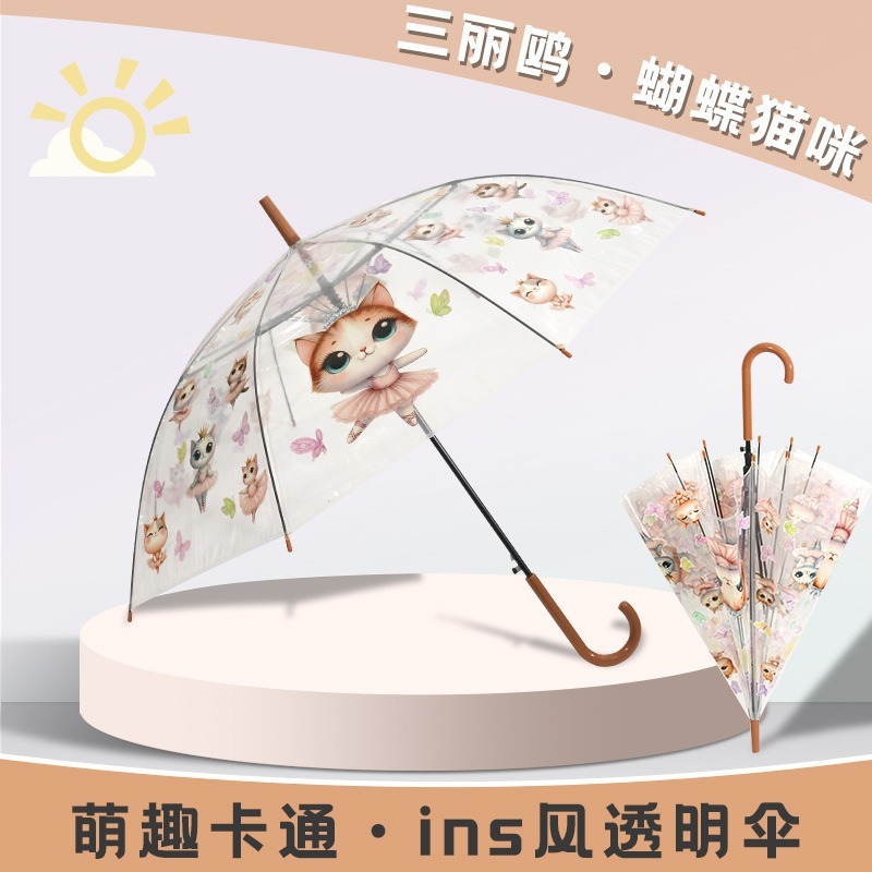 인스타 감성 투명 우산 만화 어린이용 긴 손잡이 우산 자동 어린이용 재미있는 우산 광고 우산 선물용 투명 직선형 우산