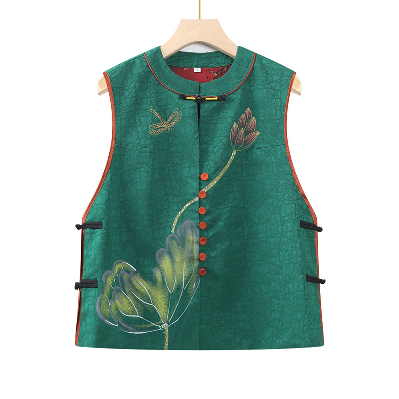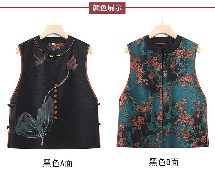 2024 가을과 겨울 새로운 스타일 중장기 유제품 여성 의류 어머니 패션 새로운 중국 스타일 컬러 민소매 조끼 조끼