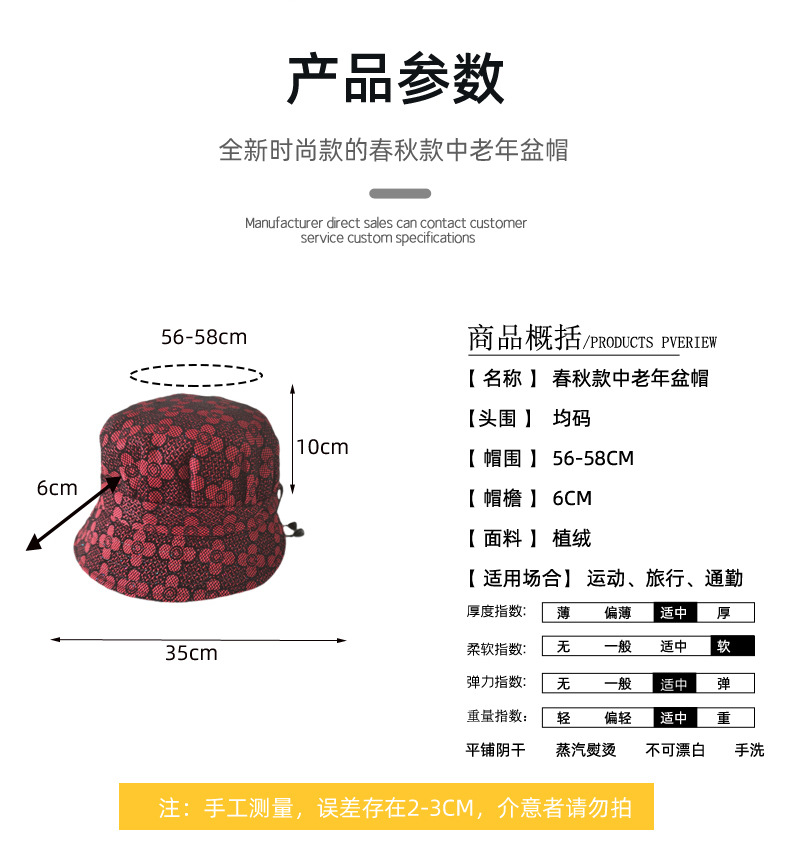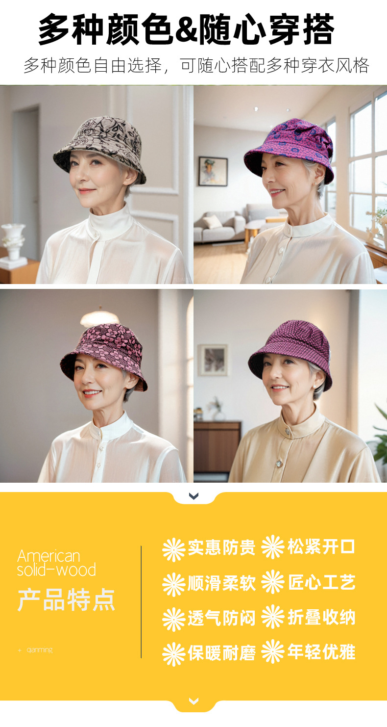 신상품 봄가을 여성 중노년용 버킷햇, 따뜻한 넓은 챙, 자외선 차단, 벨벳 소재, 부드럽고 피부 친화적인 피셔맨햇스토어 가기