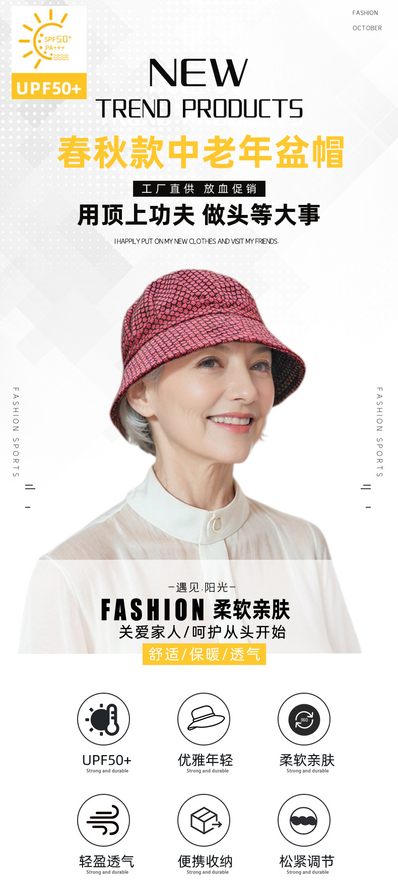 신상품 봄가을 여성 중노년용 버킷햇, 따뜻한 넓은 챙, 자외선 차단, 벨벳 소재, 부드럽고 피부 친화적인 피셔맨햇