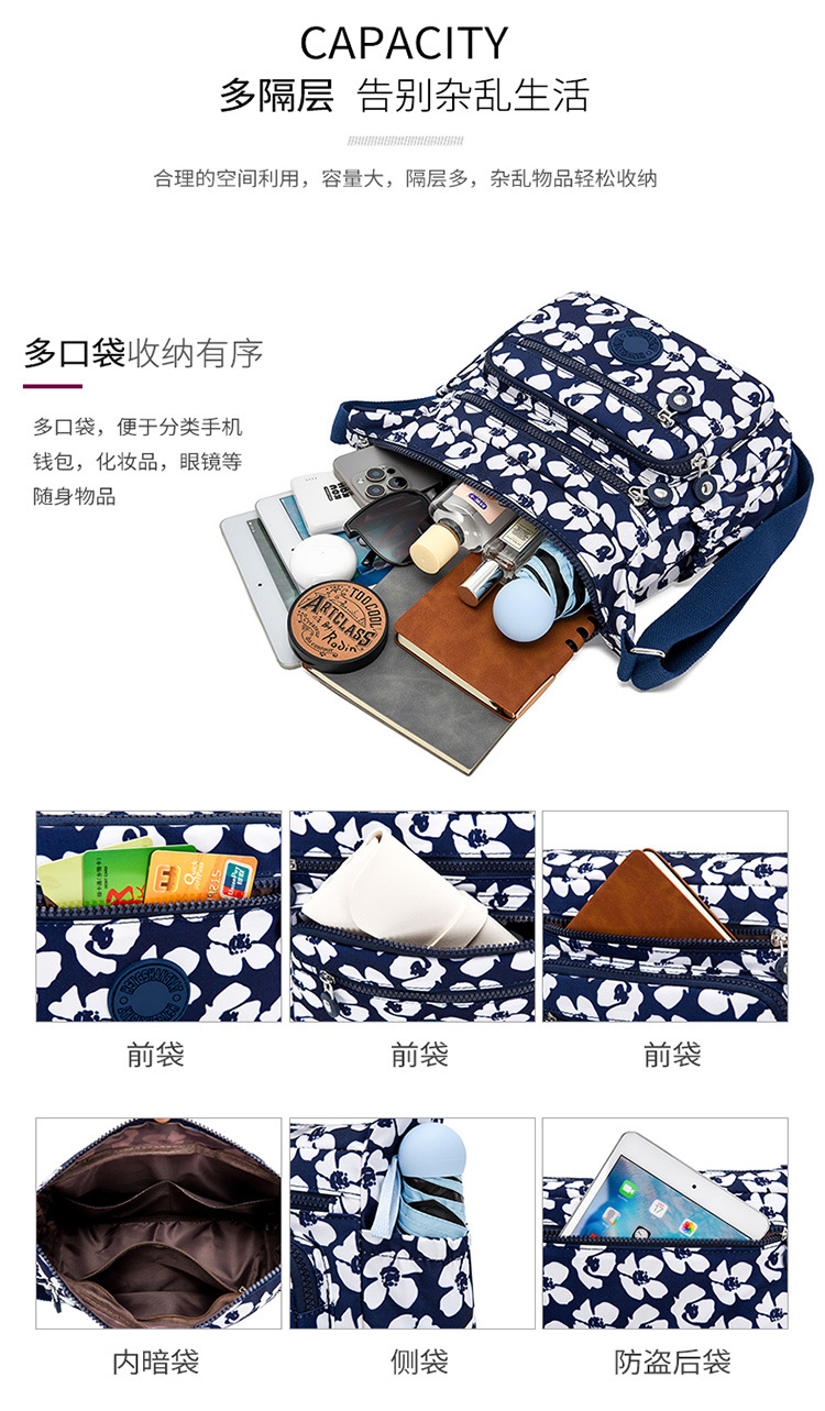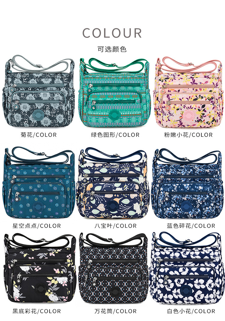 나일론 프린트 크로스백 여성 가방 캐주얼 경량 중년 엄마 가방 대용량 여성 숄더백 크로스백스토어 가기