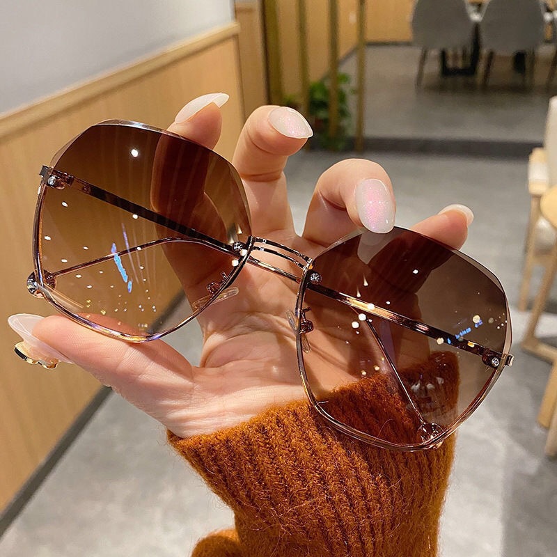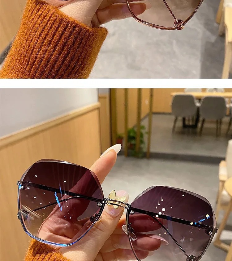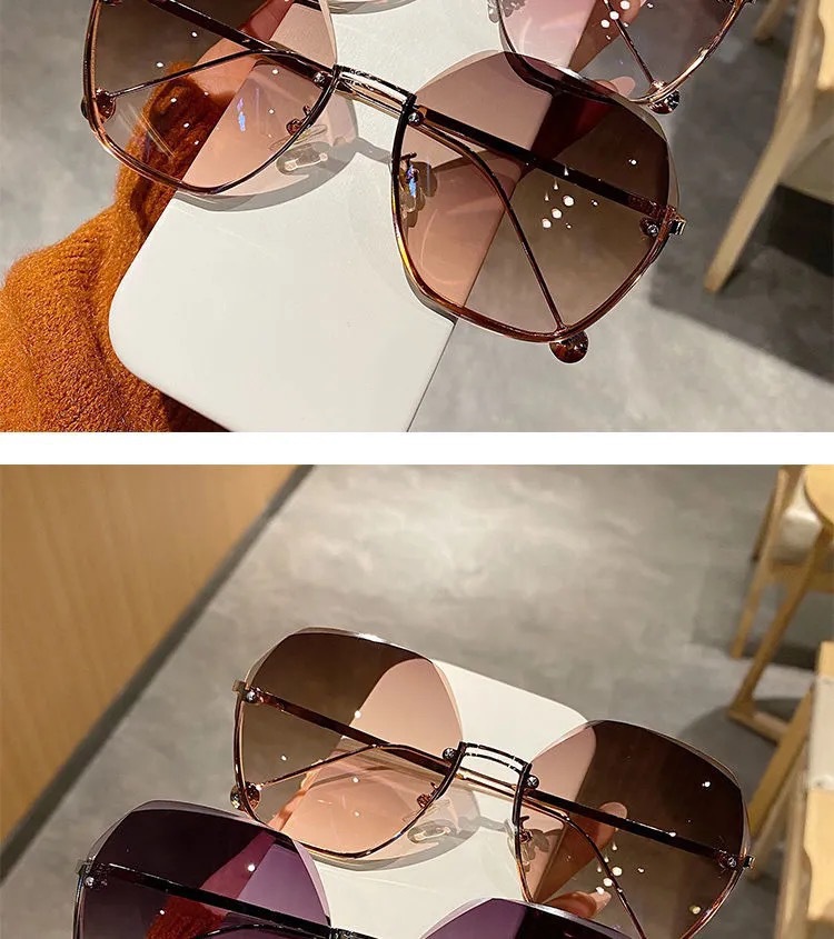 새로운 도착 프레임리스 컷 에지 선글라스 2024 여름 유행 한국 스타일 쉐이크 톤 라이브 선글라스 여성의 큰 얼굴 슬리밍 안경