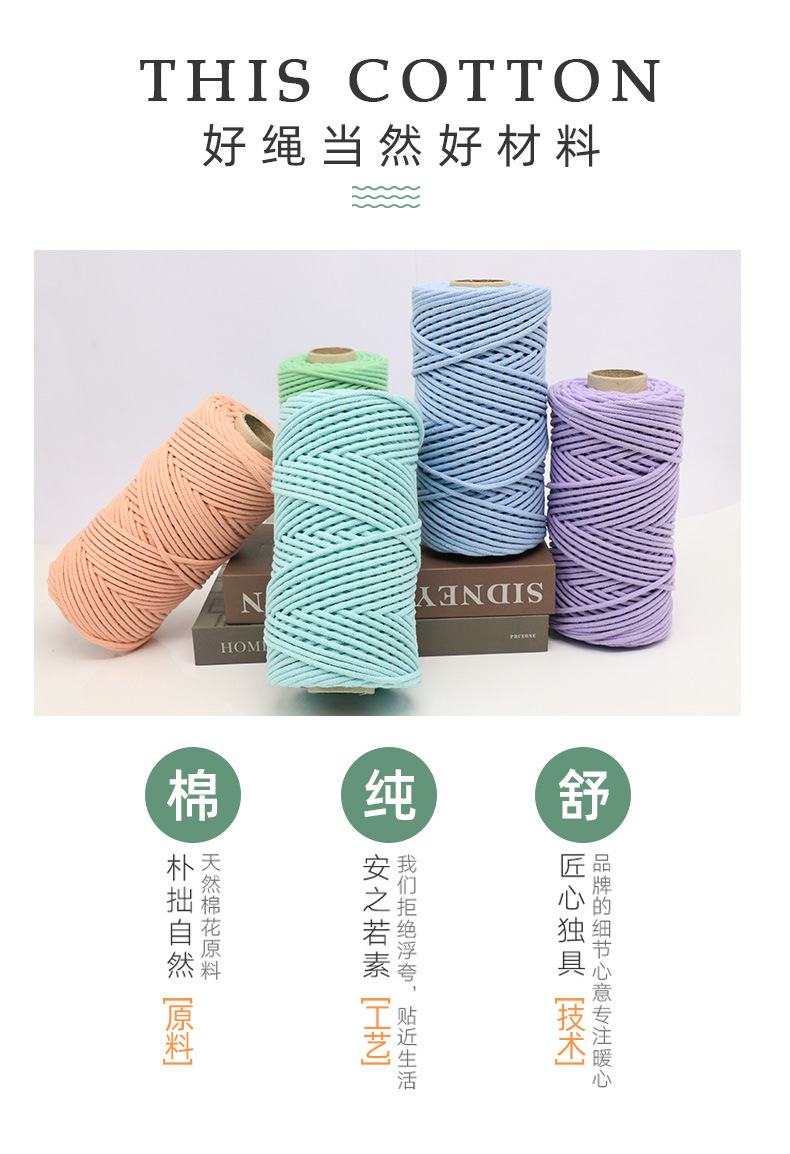 3mm 컬러 코어 10 m 꼰 로프 제조 업체 도매 수제 DIY 포장 손 번들 태피스트리 로프 코어 코튼 로프스토어 가기