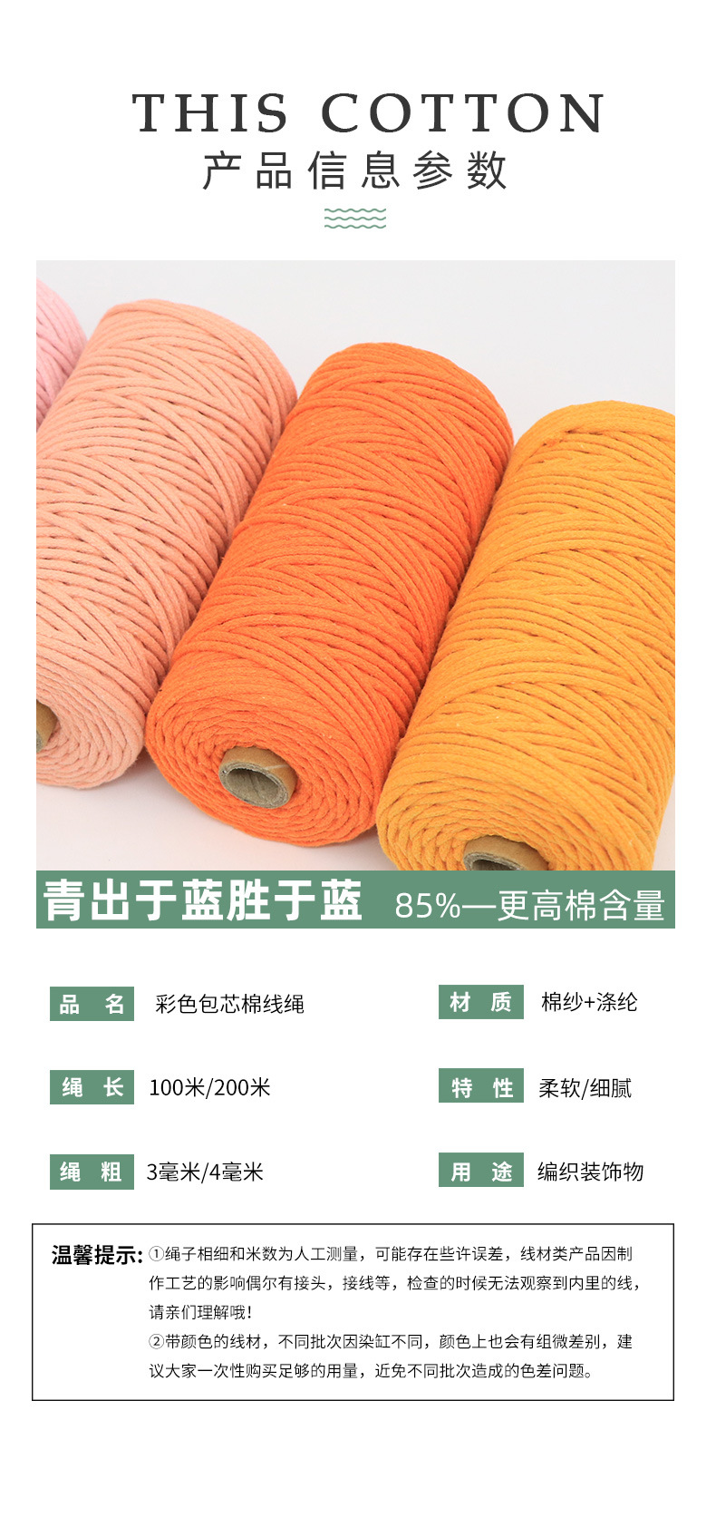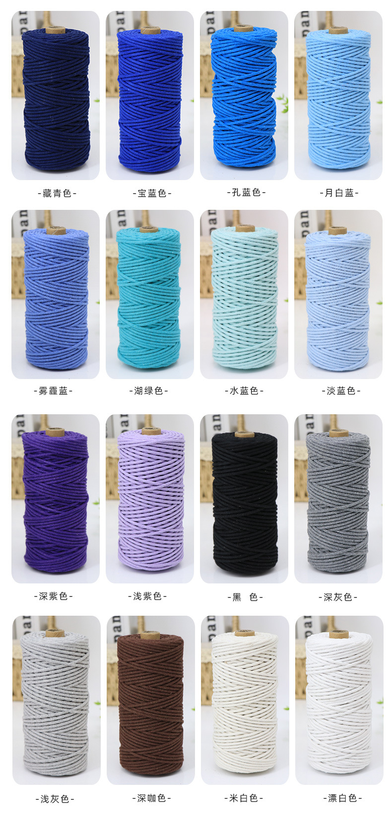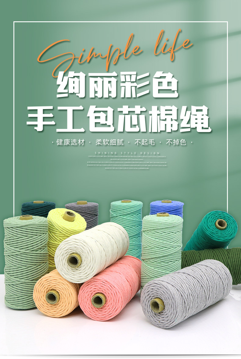 3mm 컬러 코어 10 m 꼰 로프 제조 업체 도매 수제 DIY 포장 손 번들 태피스트리 로프 코어 코튼 로프