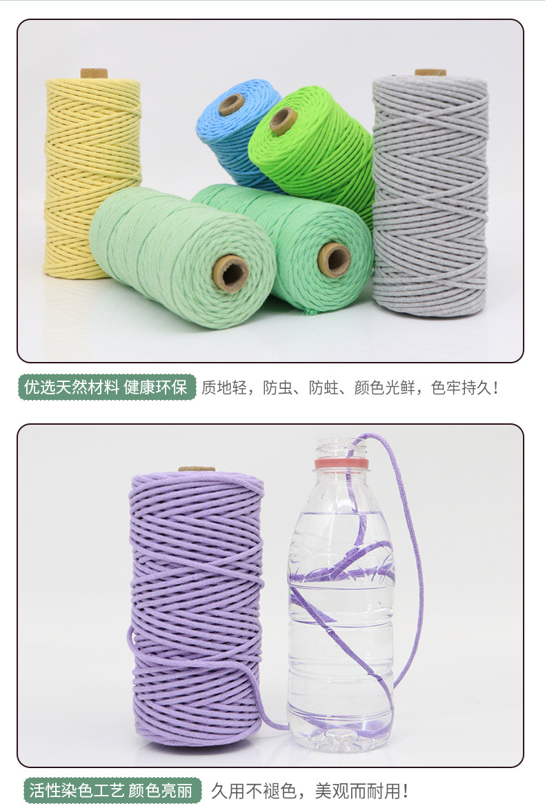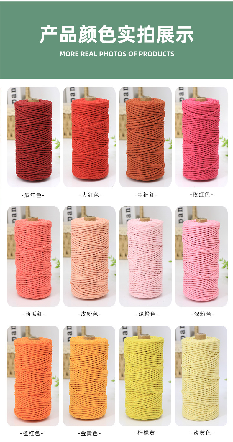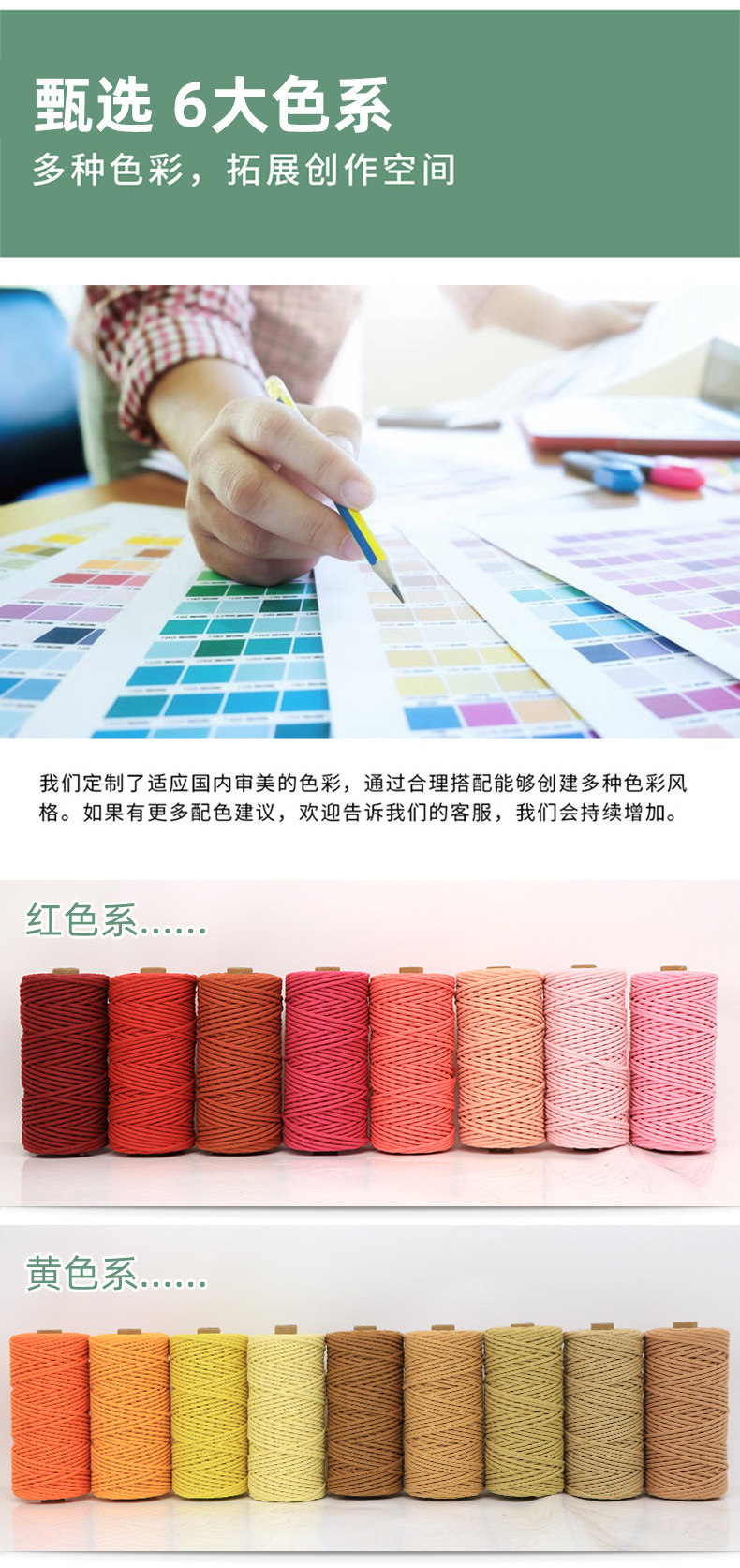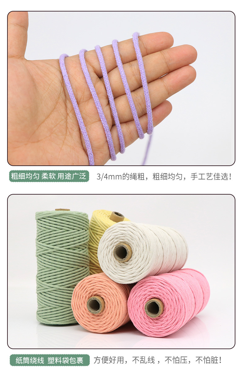 3mm 컬러 코어 10 m 꼰 로프 제조 업체 도매 수제 DIY 포장 손 번들 태피스트리 로프 코어 코튼 로프