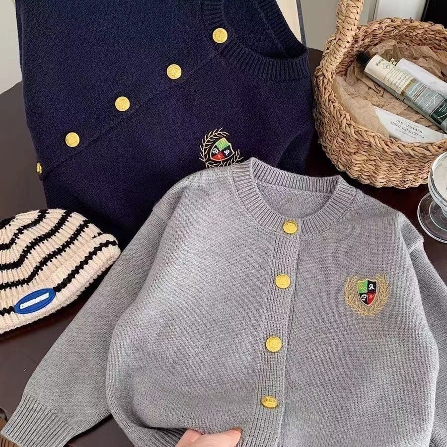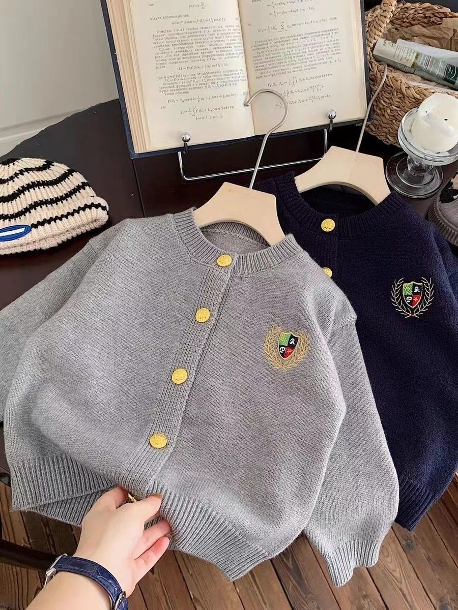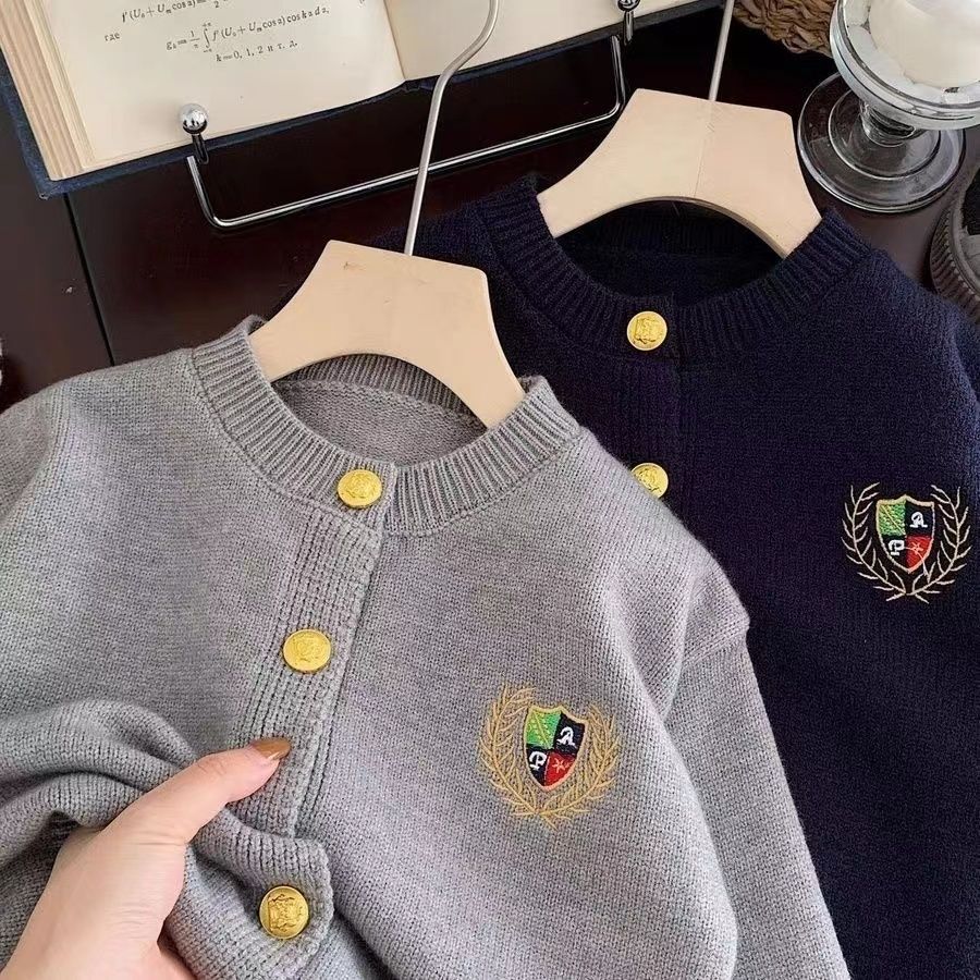 어린이 스웨터 카디건 봄과 가을 새로운 소년과 소녀 아카데미 스타일 자수 톱 올 매치 소년 패션 재킷 한국 스타일스토어 가기