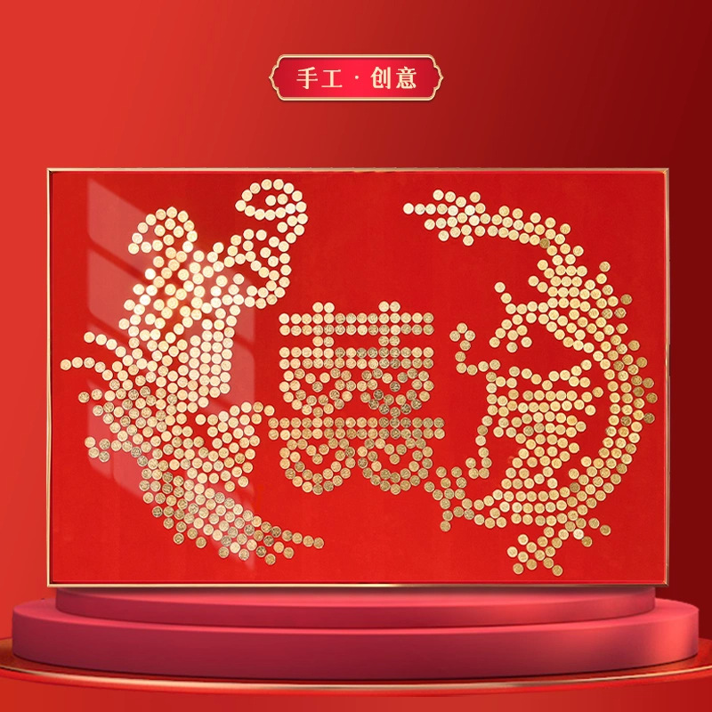 드래곤과 피닉스 Chengxiang 50 센트 동전 사진 프레임을 보내 새로운 결혼식 선물 Baixi 그림 수제 diy5 코너 해피 캐릭터 사진 프레임스토어 가기