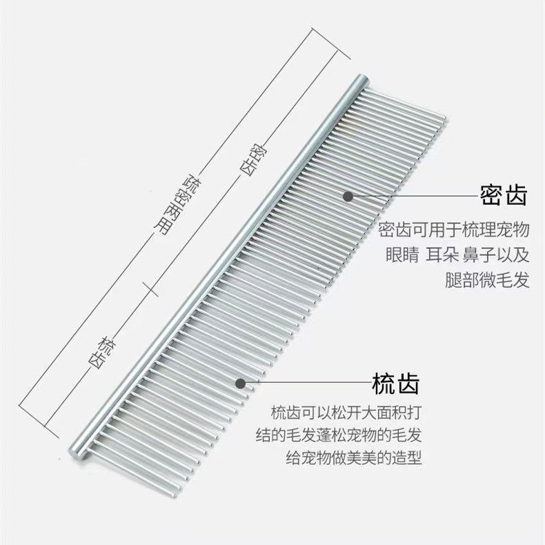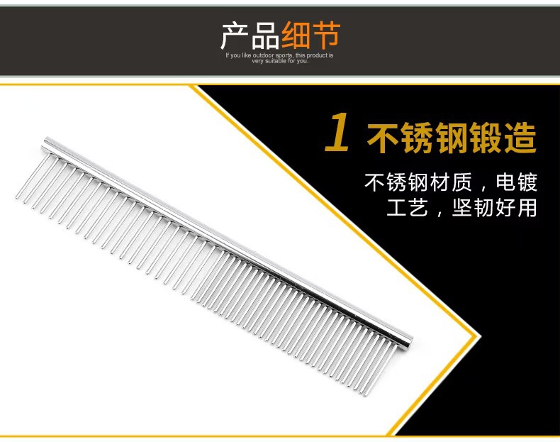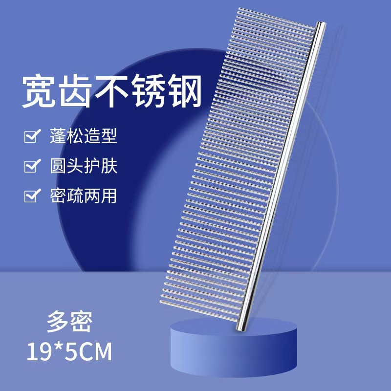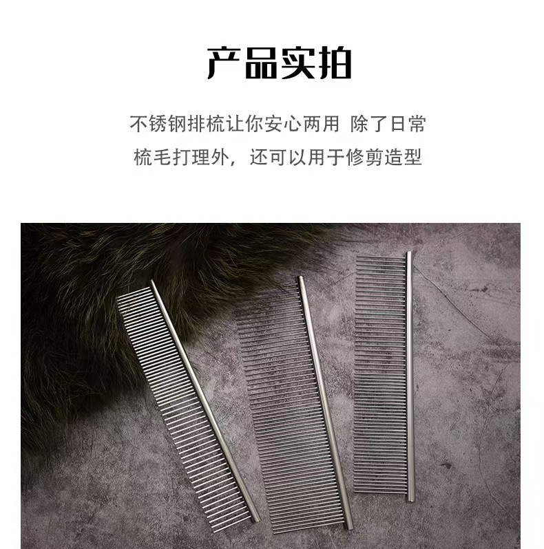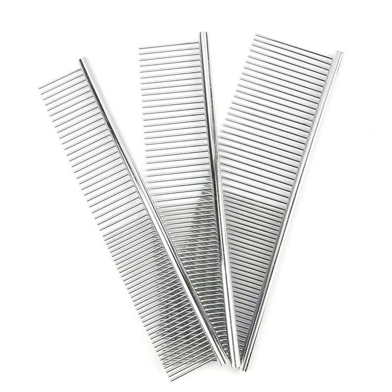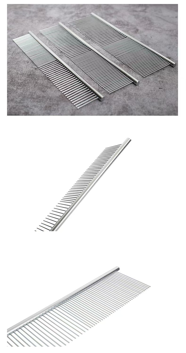 공장 공급 대형 스테인레스 스틸 애완 동물 빗 전기 도금 스트레이트 로우 빗 고양이 개 빗 머리 제거 인공물 스테인레스 스틸 빗 행 빗