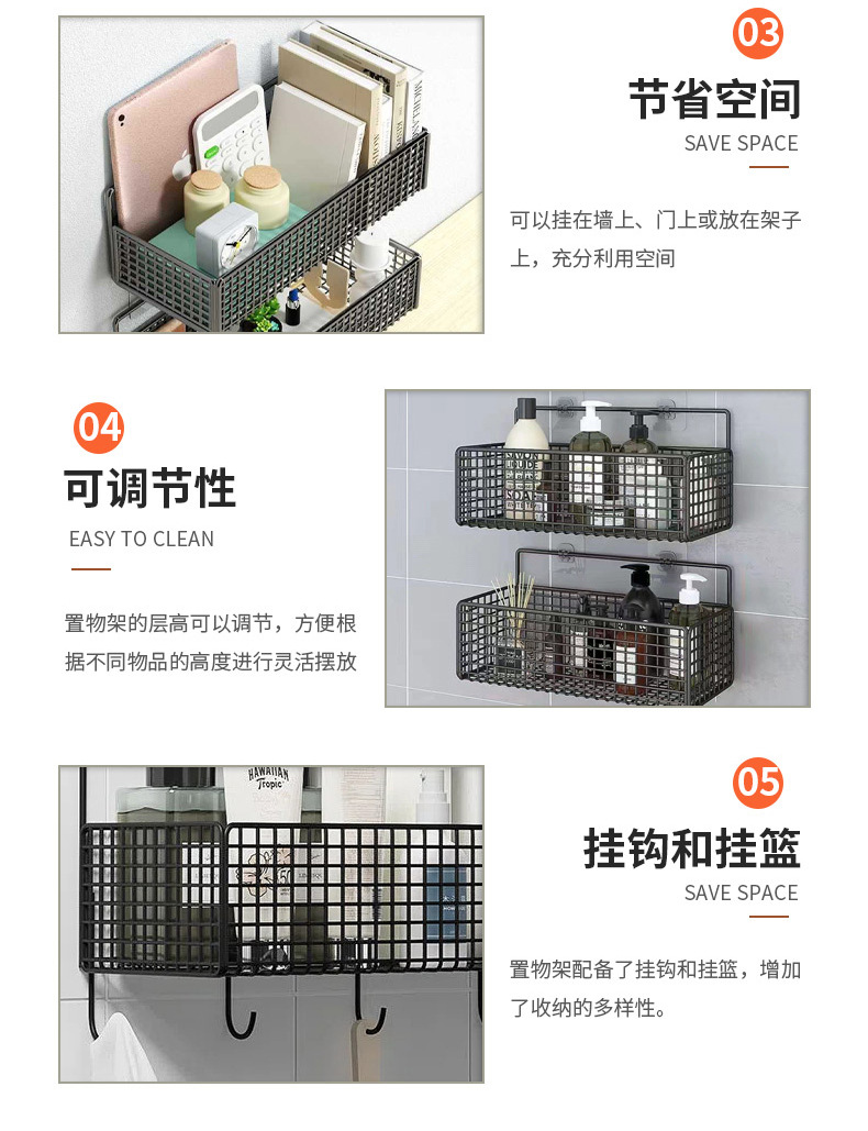 욕실 벽 랙 화장실 벽 매달려 펀치 프리 워시 테이블 보관 바구니 욕조 화장실 보관 선반