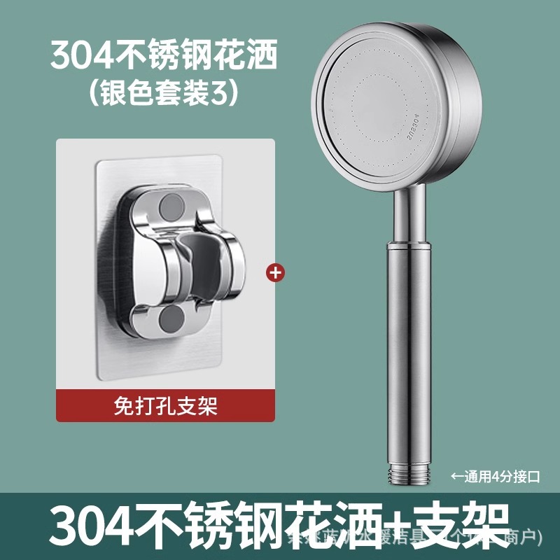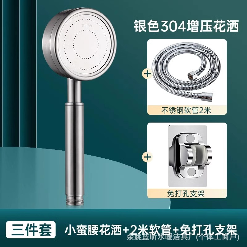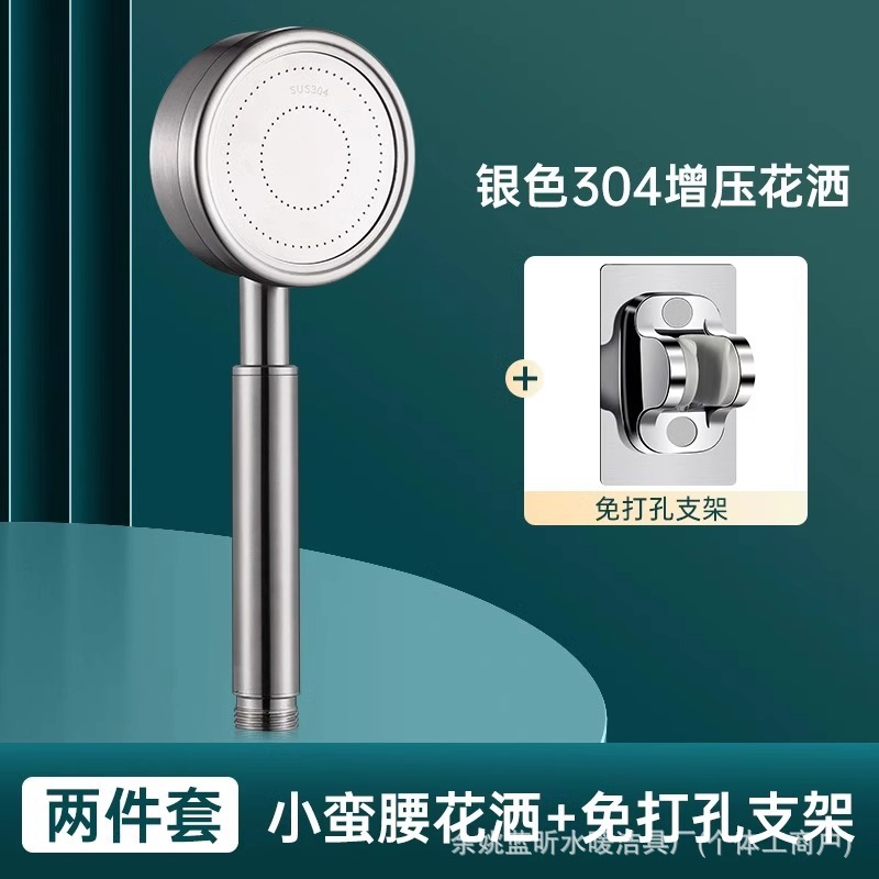 • 실버 작은 허리 304 필터 슈퍼차지 샤워 헤드 + 펀치 프리 브래킷