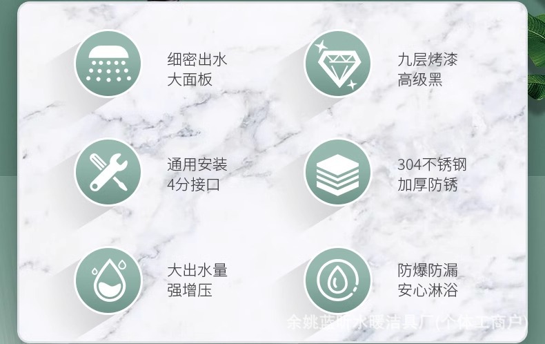• 우아한 블랙 [두껍고 낙하 방지] 304 스테인레스 스틸 부스터 샤워 헤드
