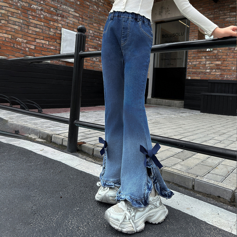 소녀 마이크로 플레어 바지 봄과 가을 어린이 가을 아우터 서양식 슬림 핏 바지 여성용 대형 어린이 가을 청바지