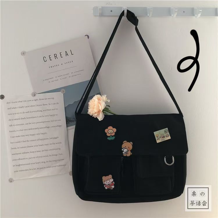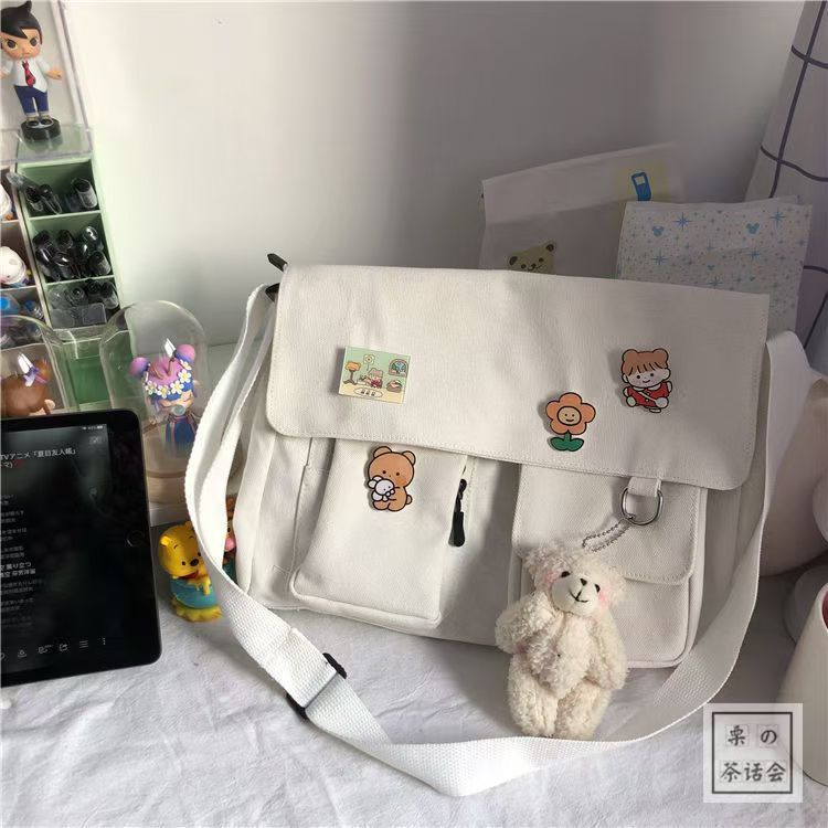 일본식 하라주쿠 귀여운 골동품 소녀 크로스 바디 백 ulzzang 한국식 학생 캔버스 가방 여성 메신저 백스토어 가기