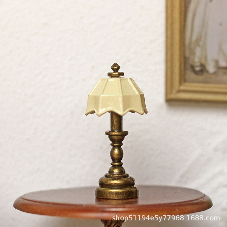 인형 집 인형 집 조명 액세서리 소형 장면 미니 황금 크리스탈 샹들리에 유리 테이블 램프 모델