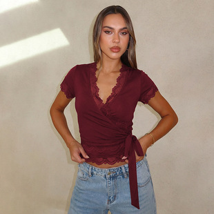 유럽과 미국의 여성복 2025 봄 신작 원라인 칼라 긴팔 가슴 감싸는 섹시한 하이 슬릿 스커트 여성용 투피스 슈트