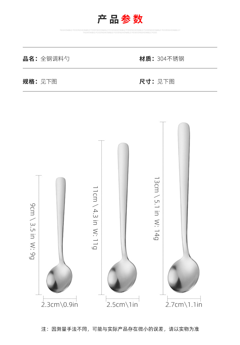 304 스테인레스 스틸 작은 라운드 스푼 미니 커피 스푼 혼합 스푼 가정용 소금 스푼 디저트 스푼 주방 조미료 스푼스토어 가기
