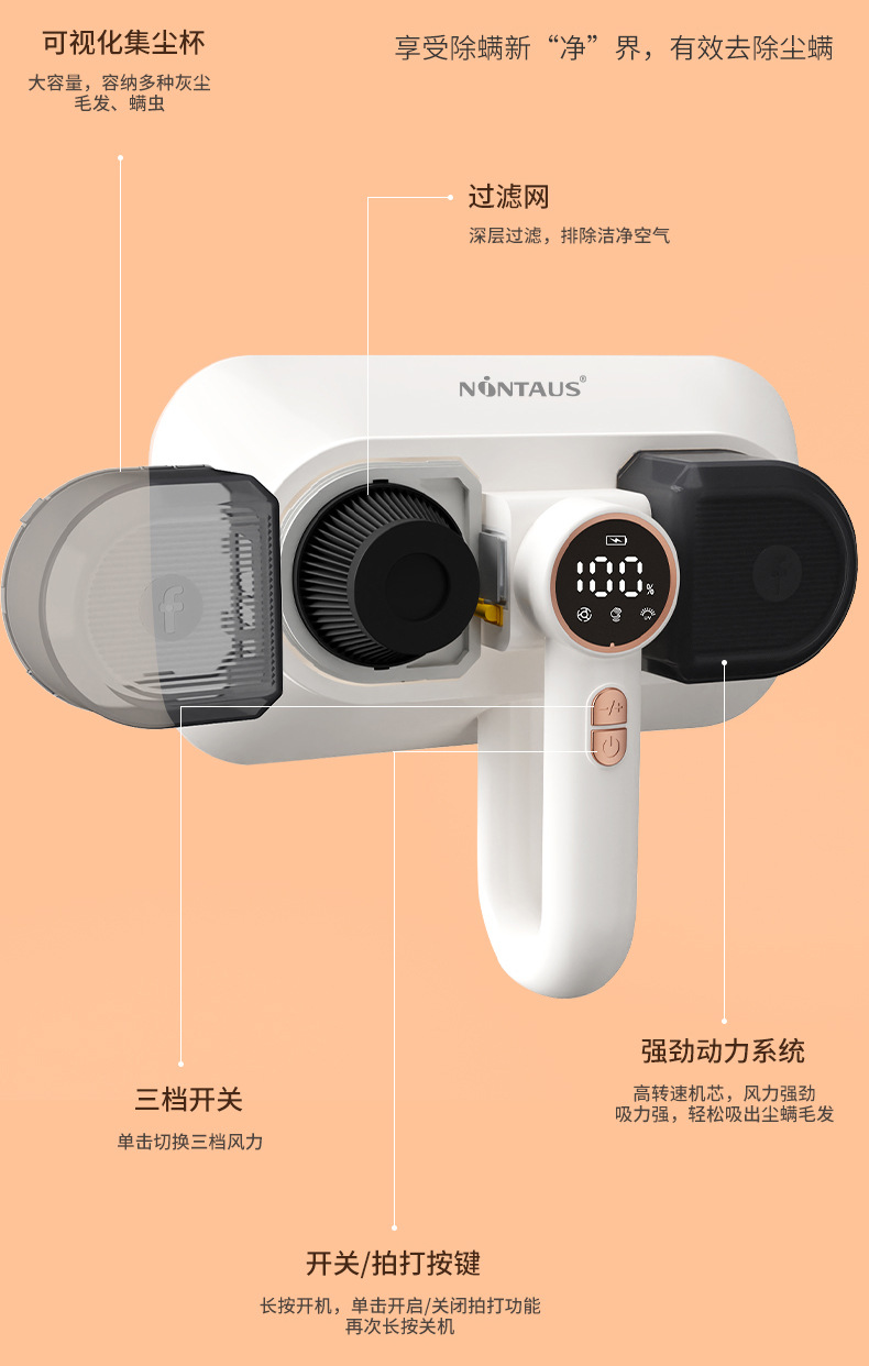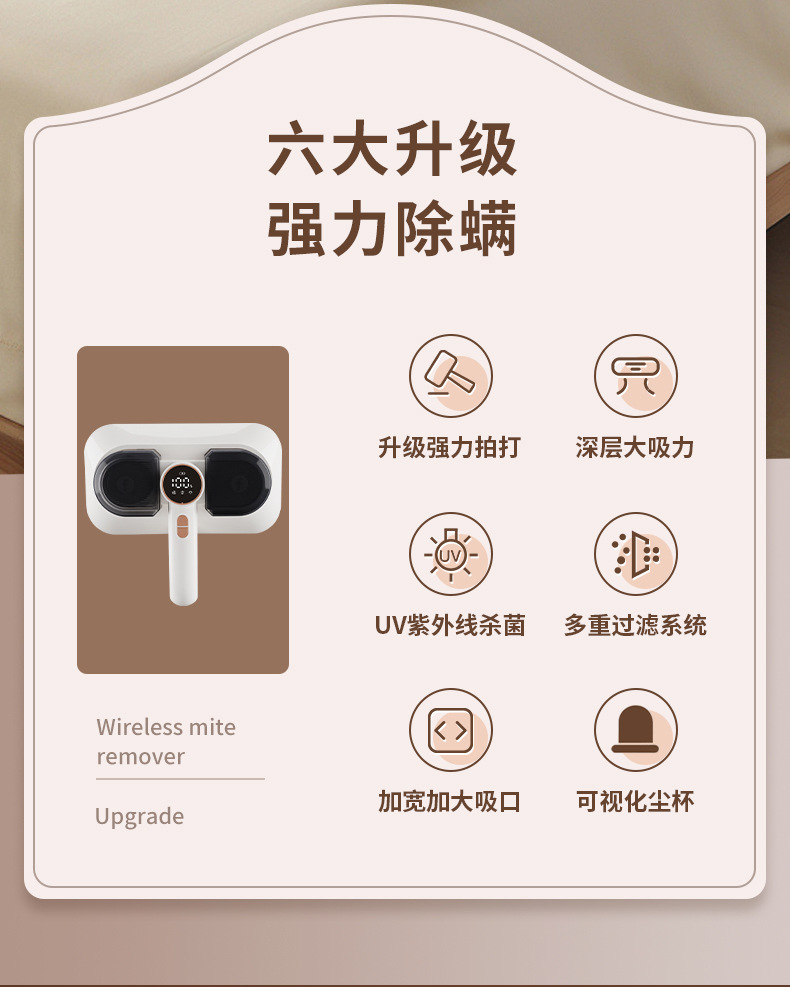 진정 소형 진드기 제거기 가정용 침대 소파 무선 살균기 핸드헬드 진드기 제거 청소기 저소음 진드기 제거